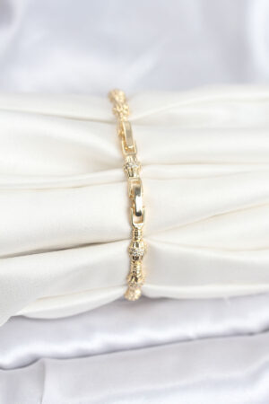 – Ürünümüz pirinç materyalden üretilmiştir.- Asansörlü tasarımı ile her bilek ölçüsüne uyum sağlar.- Doğru ve özenli kullanımda kararma ve renk değişimi yapmaz.- Ürününüzün formunu ve rengini uzun süre koruyabilmesi için parfüm, su ve kimyasal maddelerle temasından kaçınmanızı öneririz.- Ayrıca her cilt yapısının takı kullanımına tepkisi farklı olabileceği unutulmamalıdır.- Sağlıklı ve mutlu günlerde kullanmanız dileğiyle.