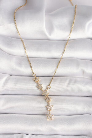 316L Çelik Gümüş Renk Zincir Zirkon Taşlı Yıldız Model Kadın Kolye