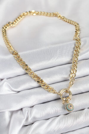 316L Çelik Zincir Gold Buz Mavisi Renk Yonca Kolye