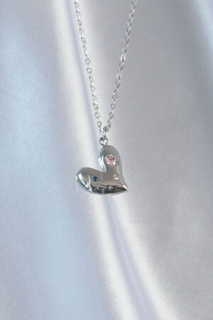 316L Çelik Gümüş Renk Fiyonk Detay Pembe Zirkon Taşlı Tektaş Kolye