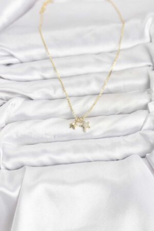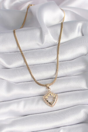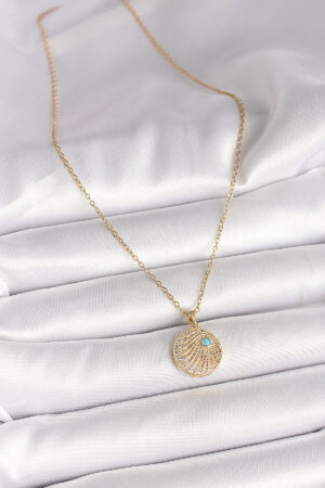 316L Çelik Gold Renk Zincir Zirkon Taş İşlemeli Hilal Yıldız İşlemeli Madalyon Model Kadın Kolye