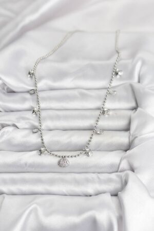 Pirinç Gümüş Renk Zirkon Taşlı Deniz Kabuğu Model Kadın Kolye