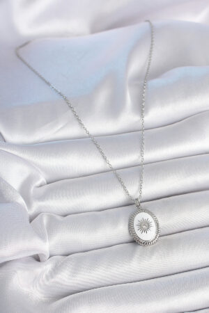 316L Çelik Zincir Gümüş Zirkon Taşlı Yılbaşı Tema Kadın Kolye