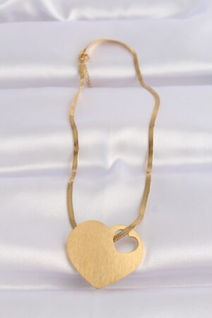 316L Çelik İtalyan Zincir Altın Renk Düz Plaka Kalp Kolye