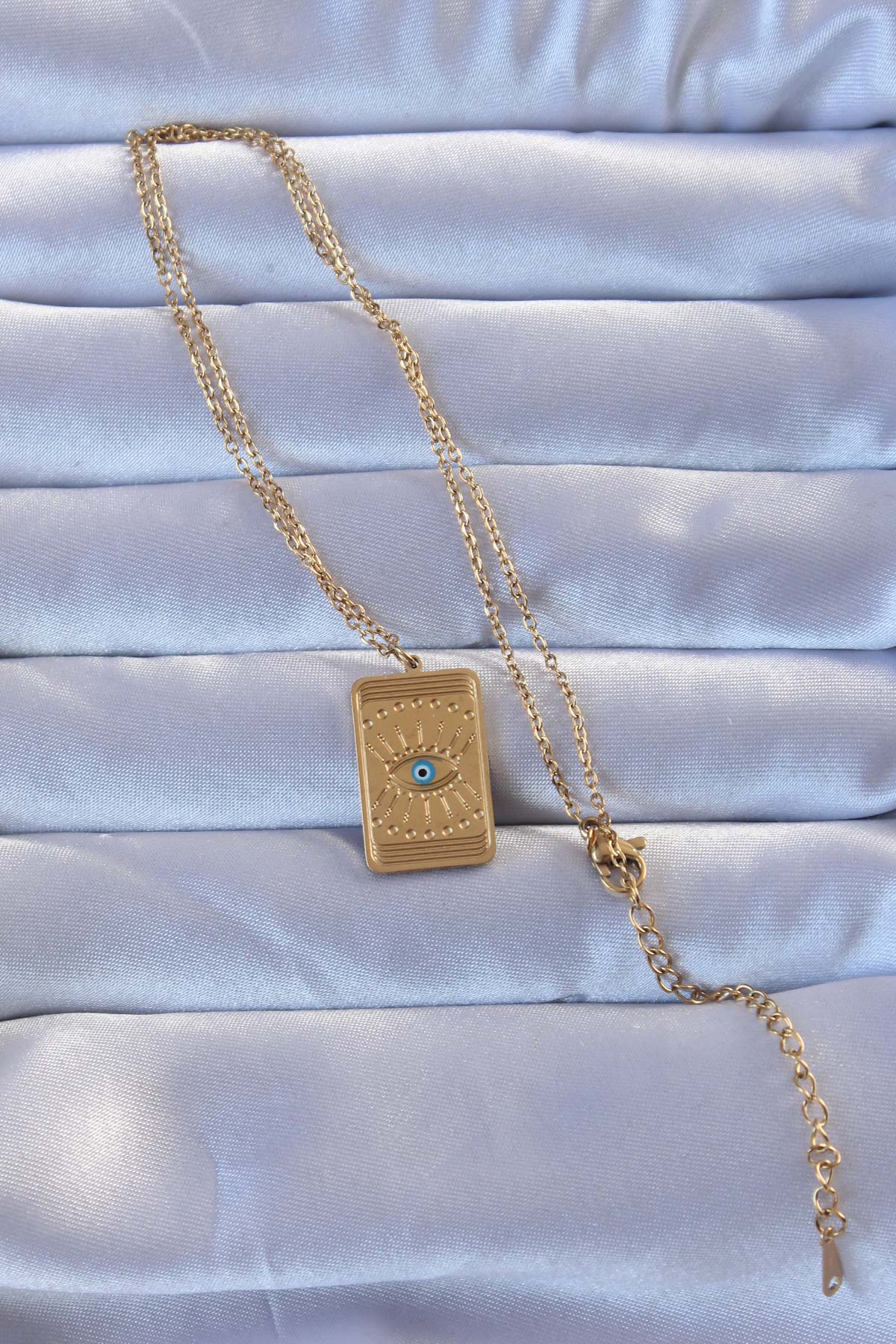 316L Altın Renk İşlemeli Nazarlı Göz Model Vintage Kolye