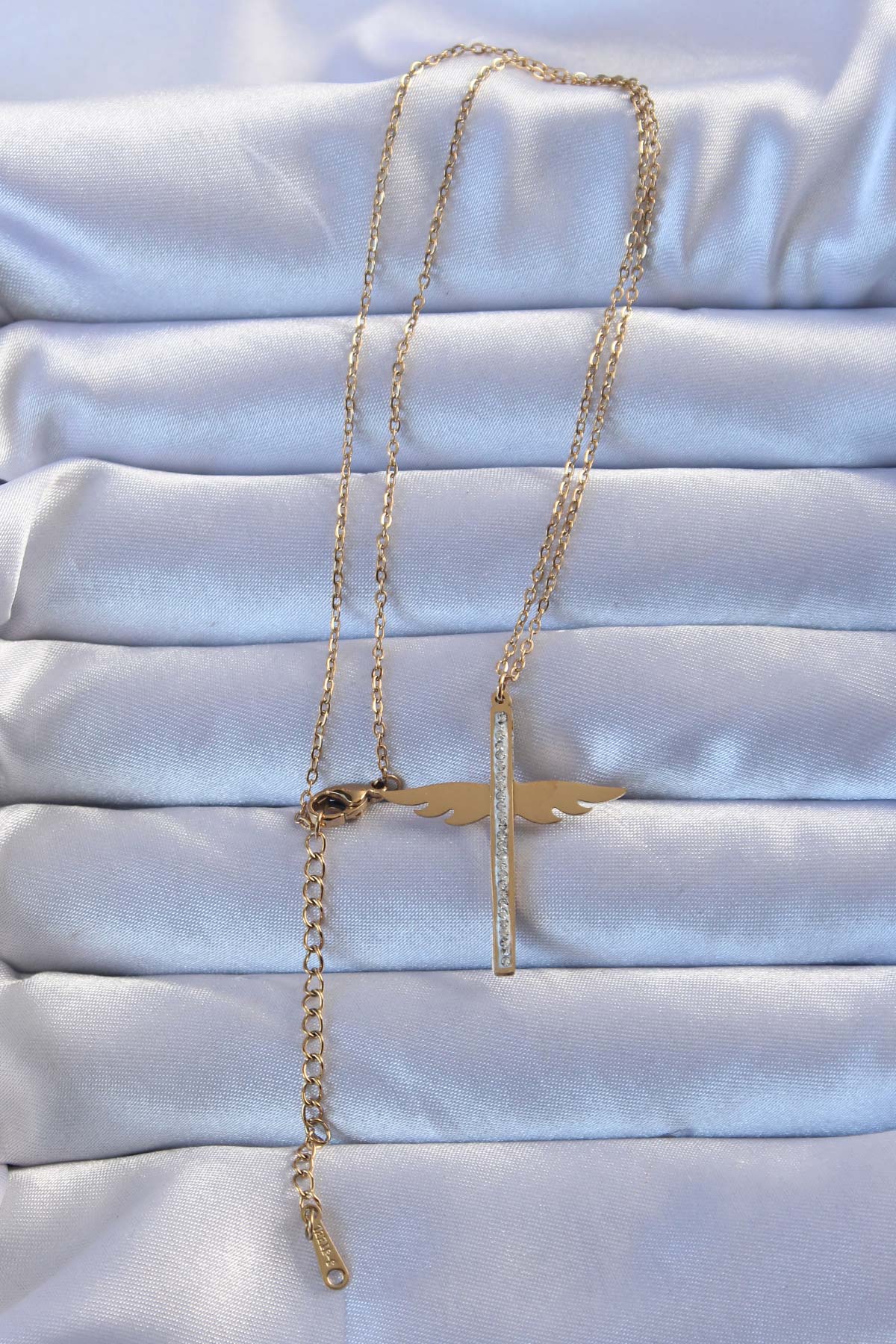 316L Çelik Altın Renk Zirkon Taşlı Mikail Kolye