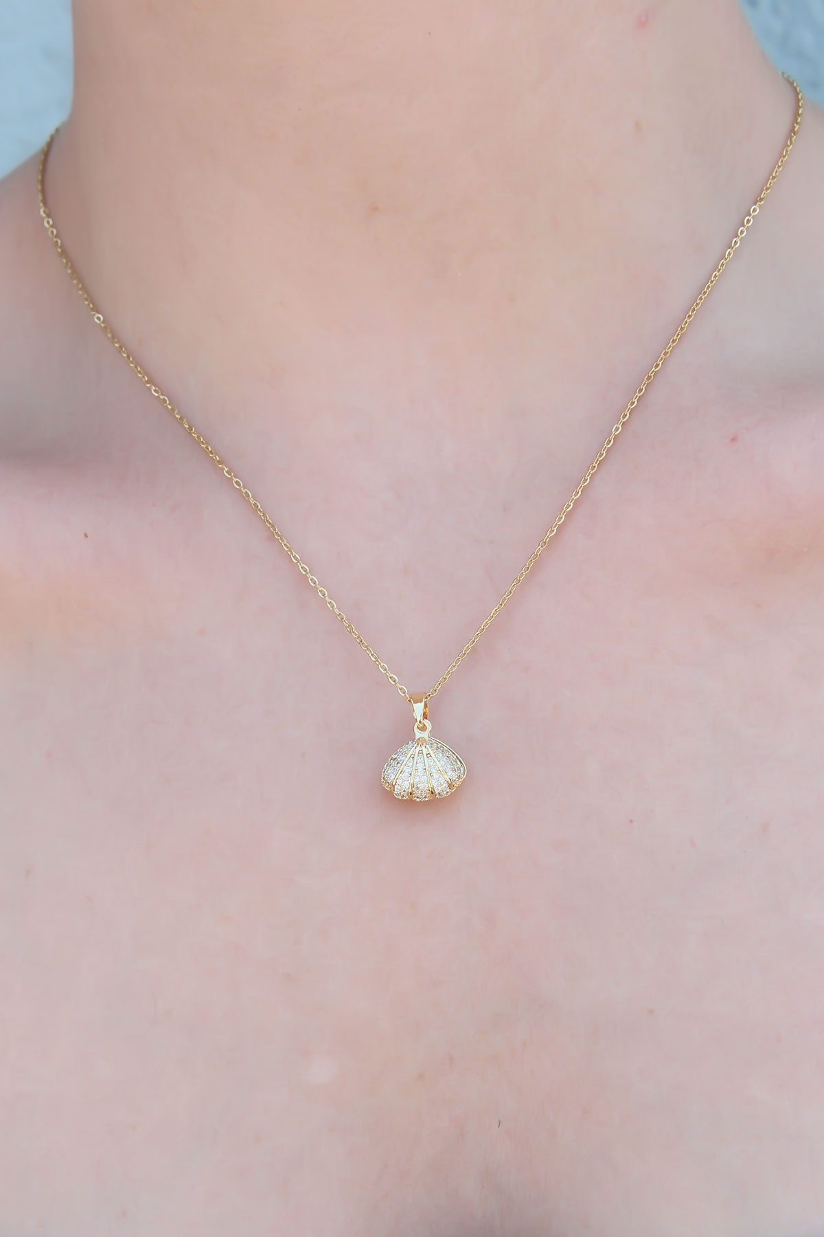 316L Çelik Gold Renk Açılır Midye Model Kadın Kolye