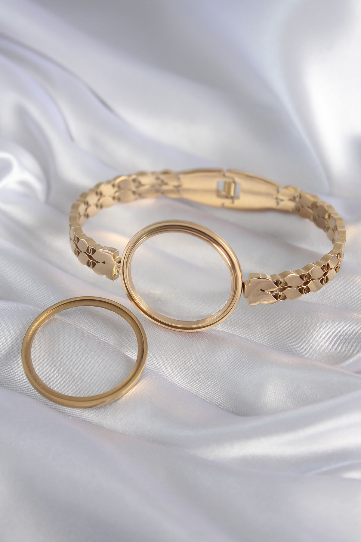 316L Çelik Gold Renk Arpa İşleme Açılabilir Fanus Model Kadın Kelepçe