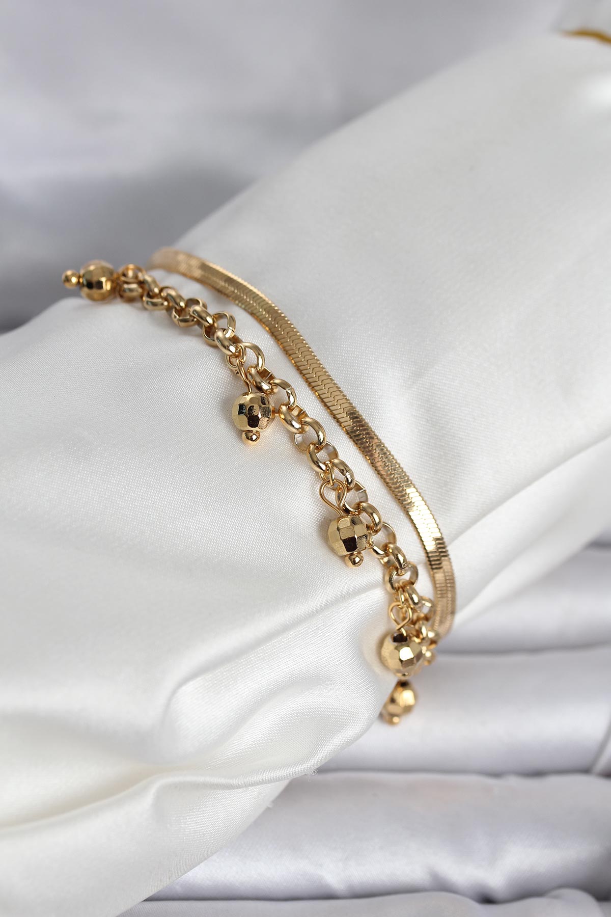 316L Çelik Gold Renk Dorika ve İtalyan Zincirli Model Kadın Bileklik