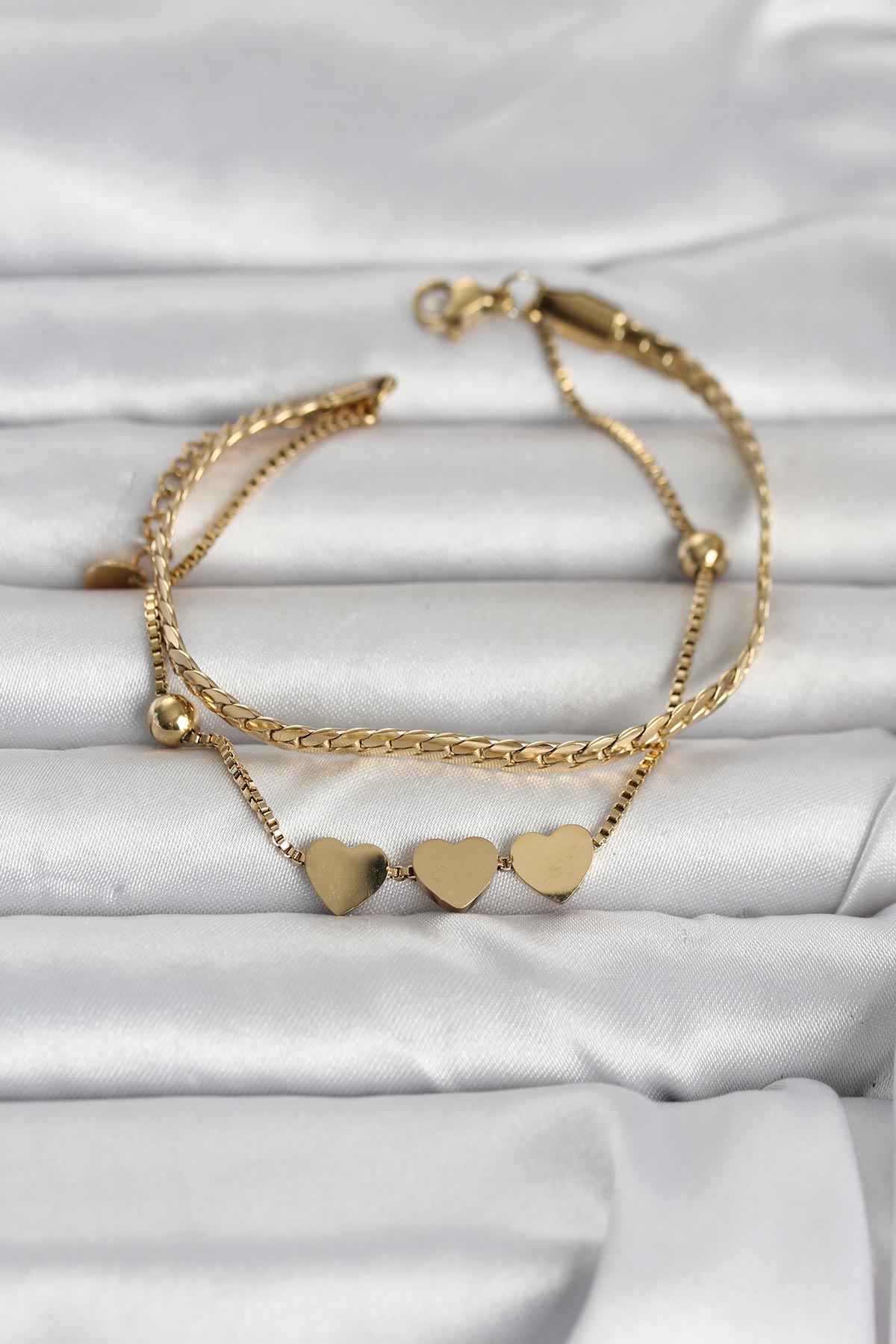 316L Çelik Gold Renk Ezme Zincir ve Kalpli Kadın Bileklik
