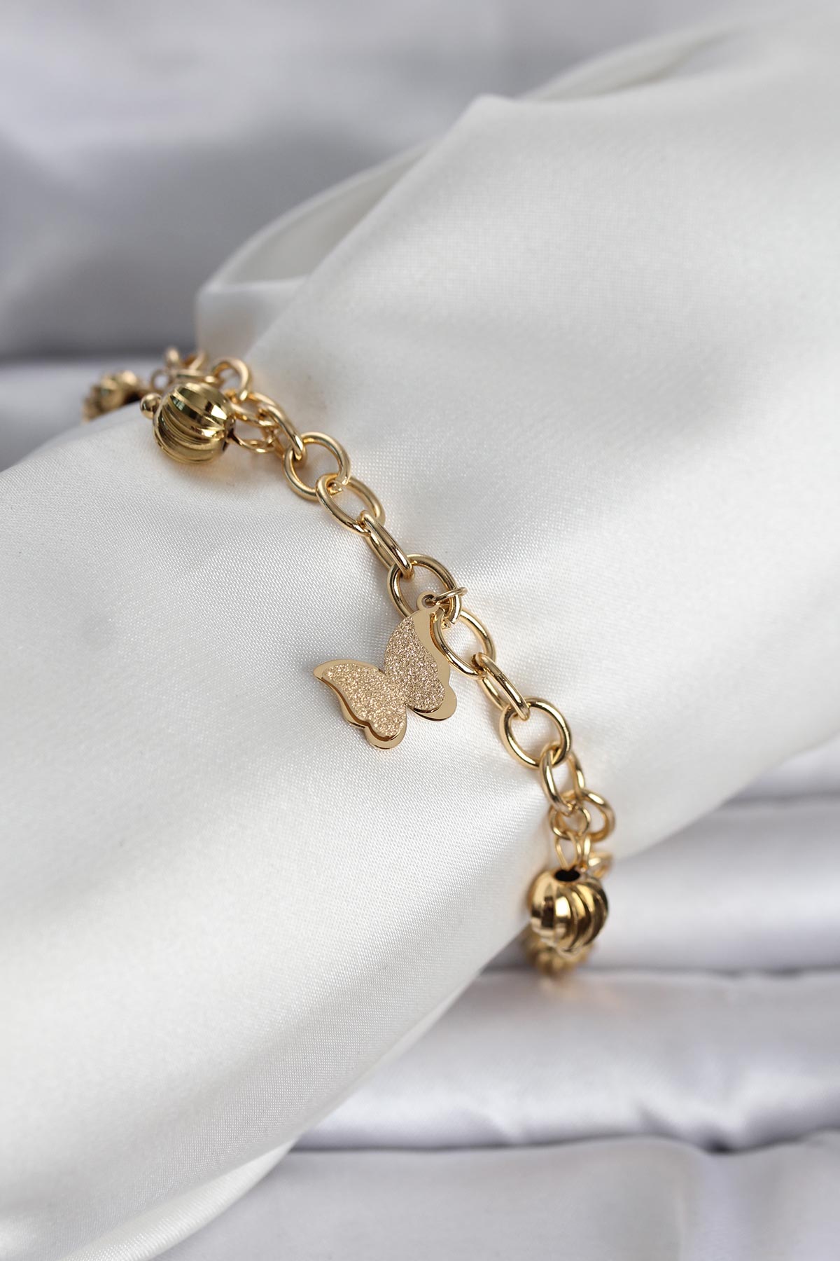 316L Çelik Gold Renk Kelebek ve Dorikalı Kadın Bileklik