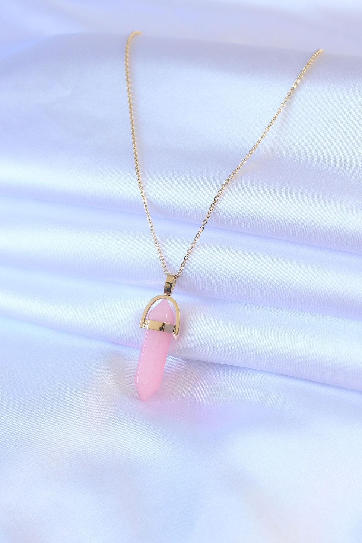 316L Çelik Gold Renk Kristal Pembe Taş Model Kadın kolye