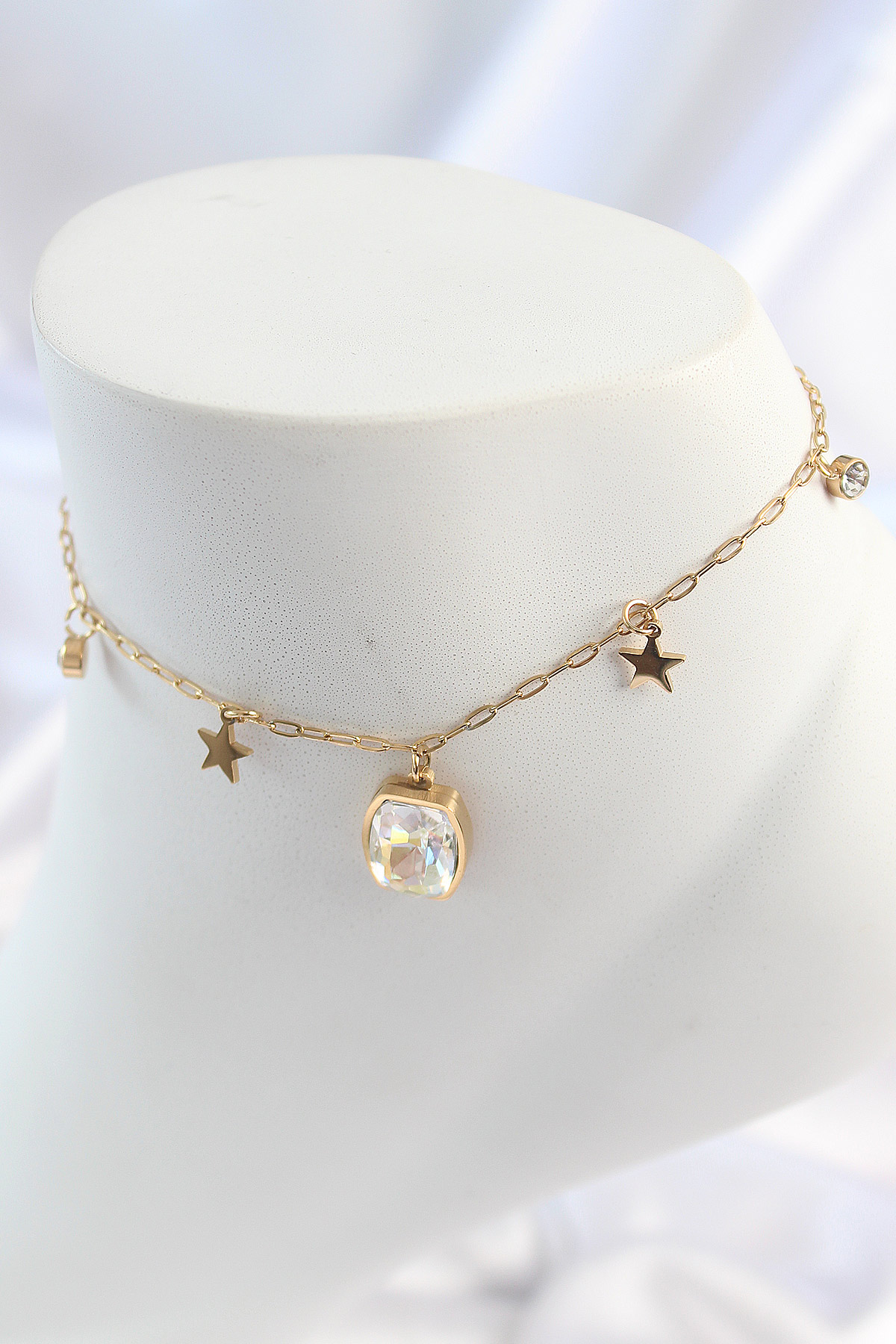 316L Çelik Gold Renk Sallantı Kare Zirkon Taş Figür Yıldız Detay Kadın Halhal