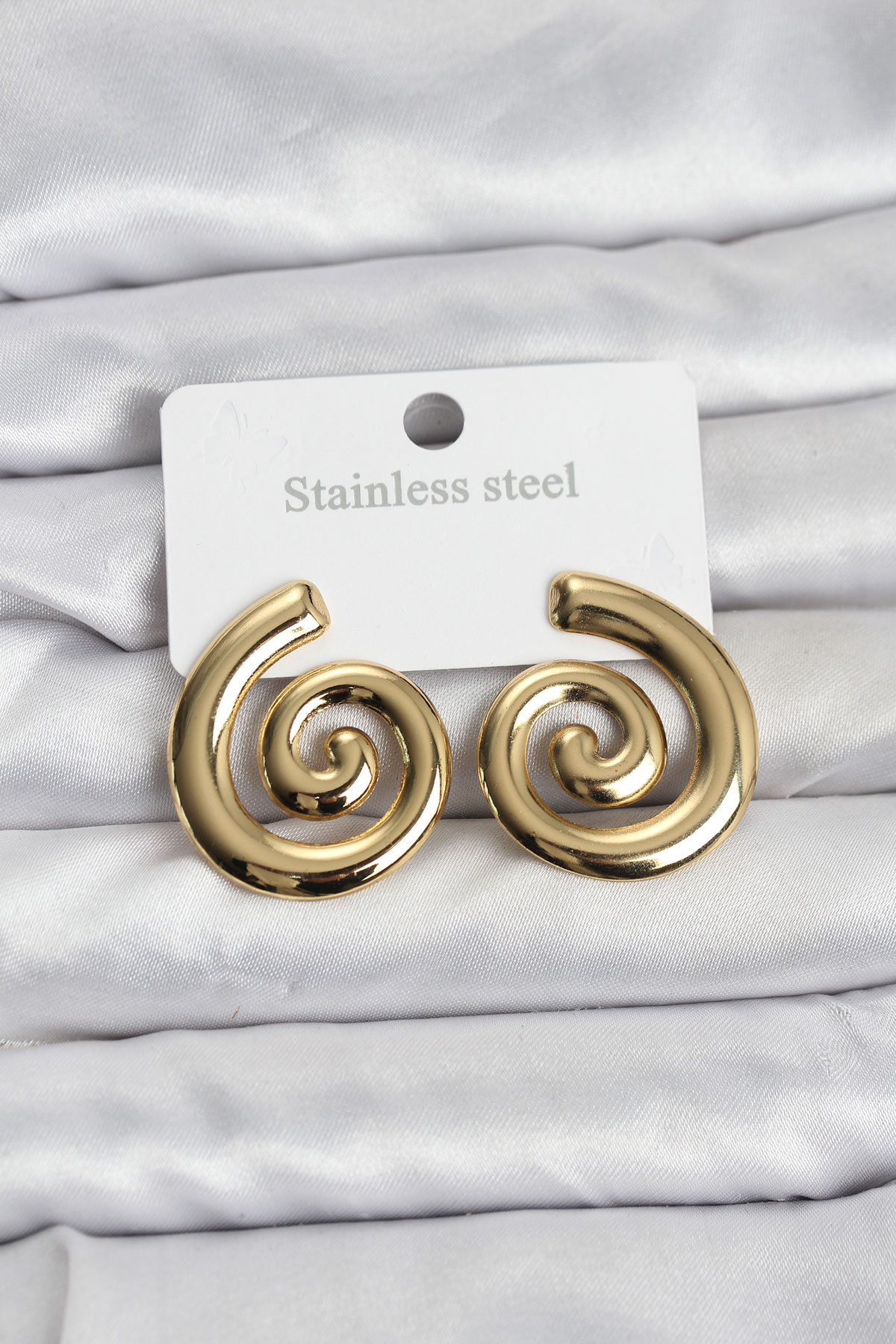 316L Çelik Gold Renk Sarmal Modelli Kadın Küpe