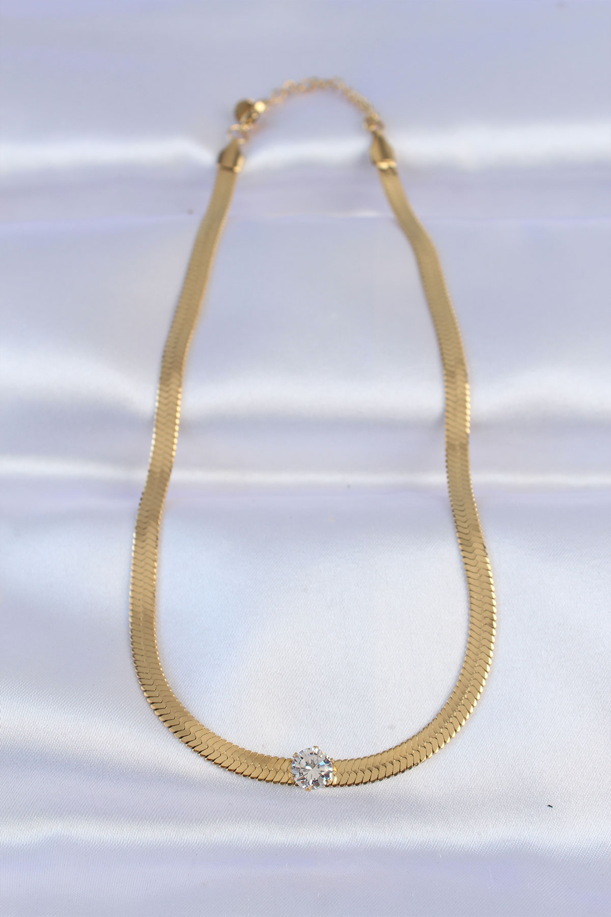 316L Çelik Gold Renk Tek Zirkon Taşlı İtalyan Zincir Kolye