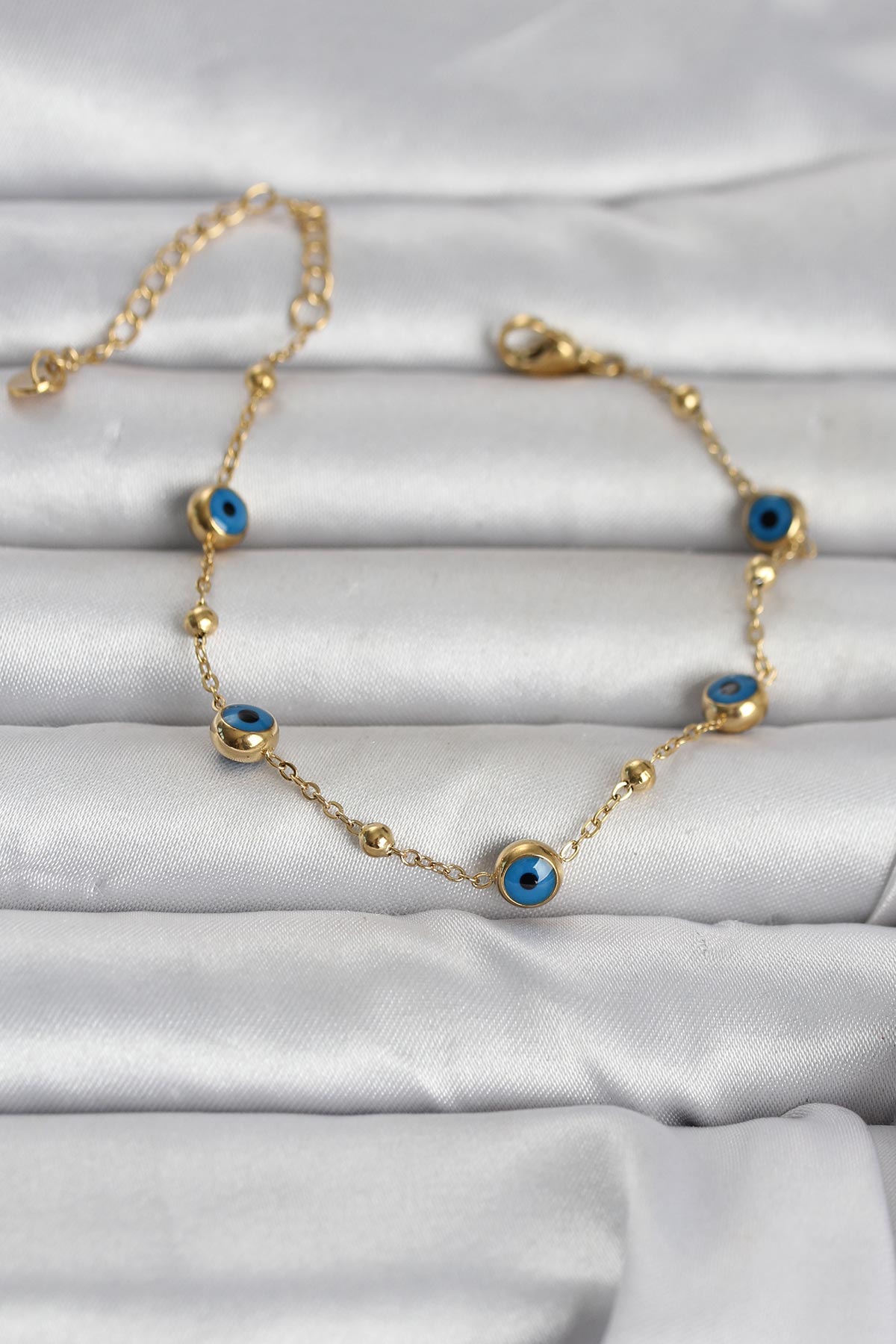 316L Çelik Gold Renk Top Zincirli Nazarlı Kadın Bileklik