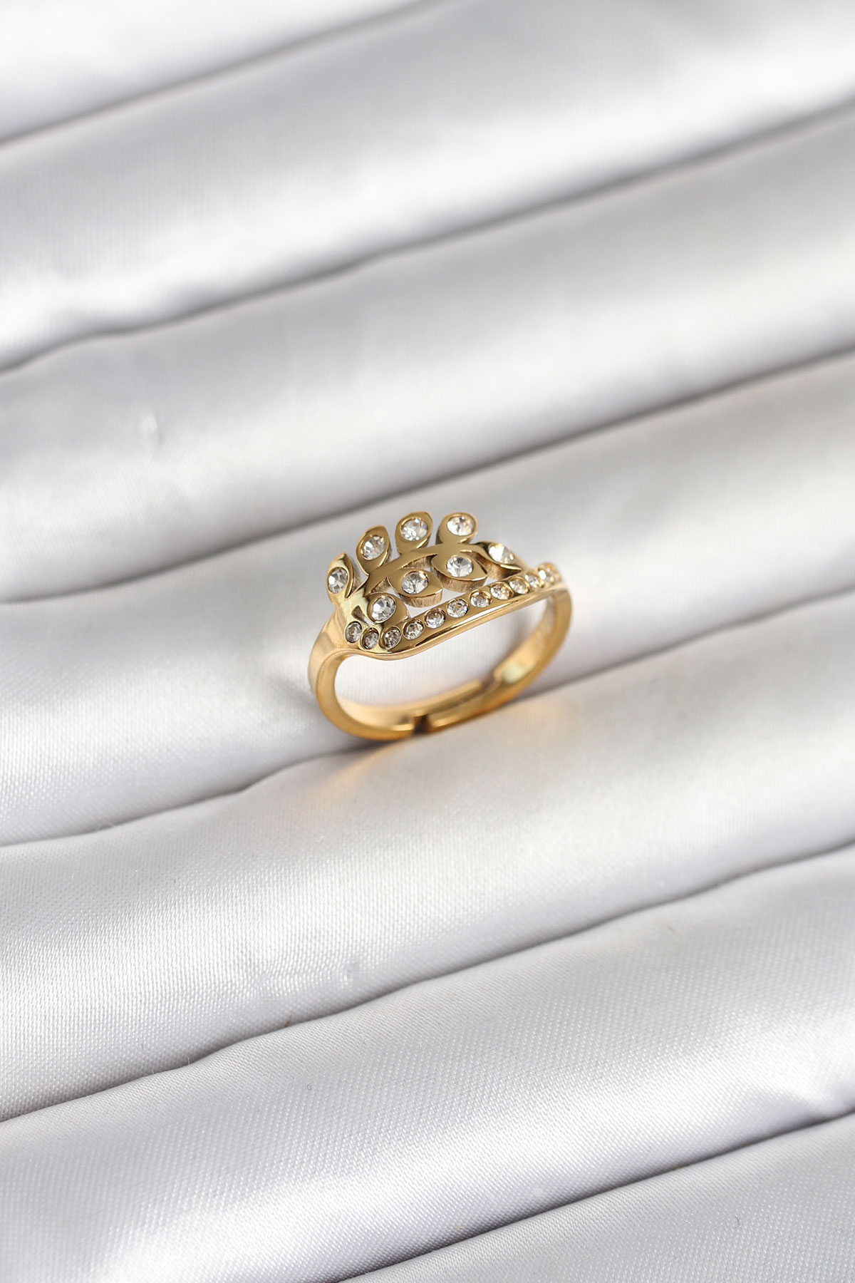 316L Çelik Gold Renk Zirkon Taşlı Kalp Model Kadın Yüzük