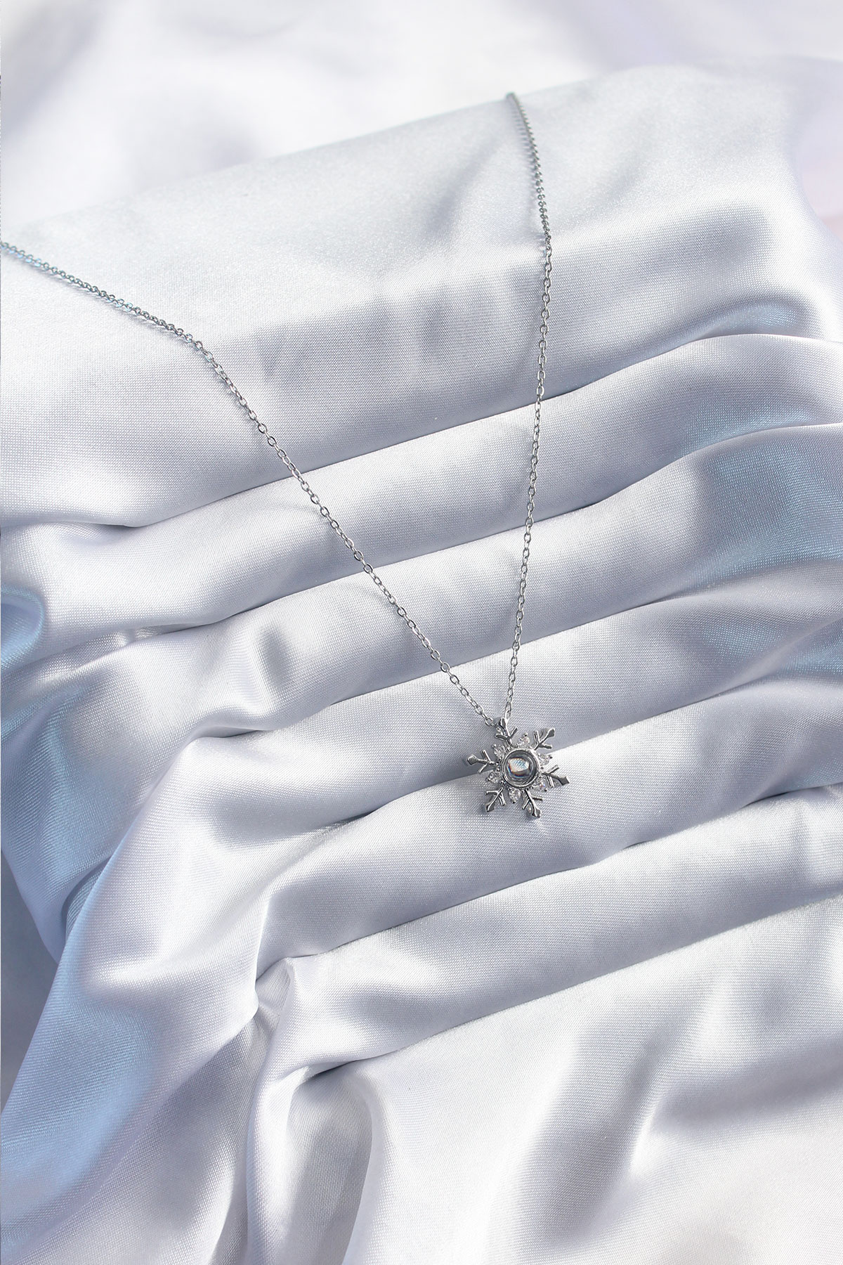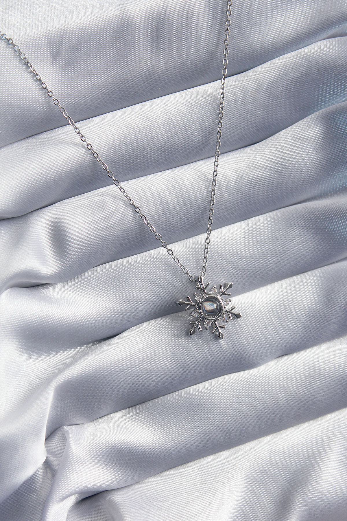 316L Çelik Gold Renk Zirkon Taşlı Kar Tanesi Projeksiyon Model Kadın Kolye