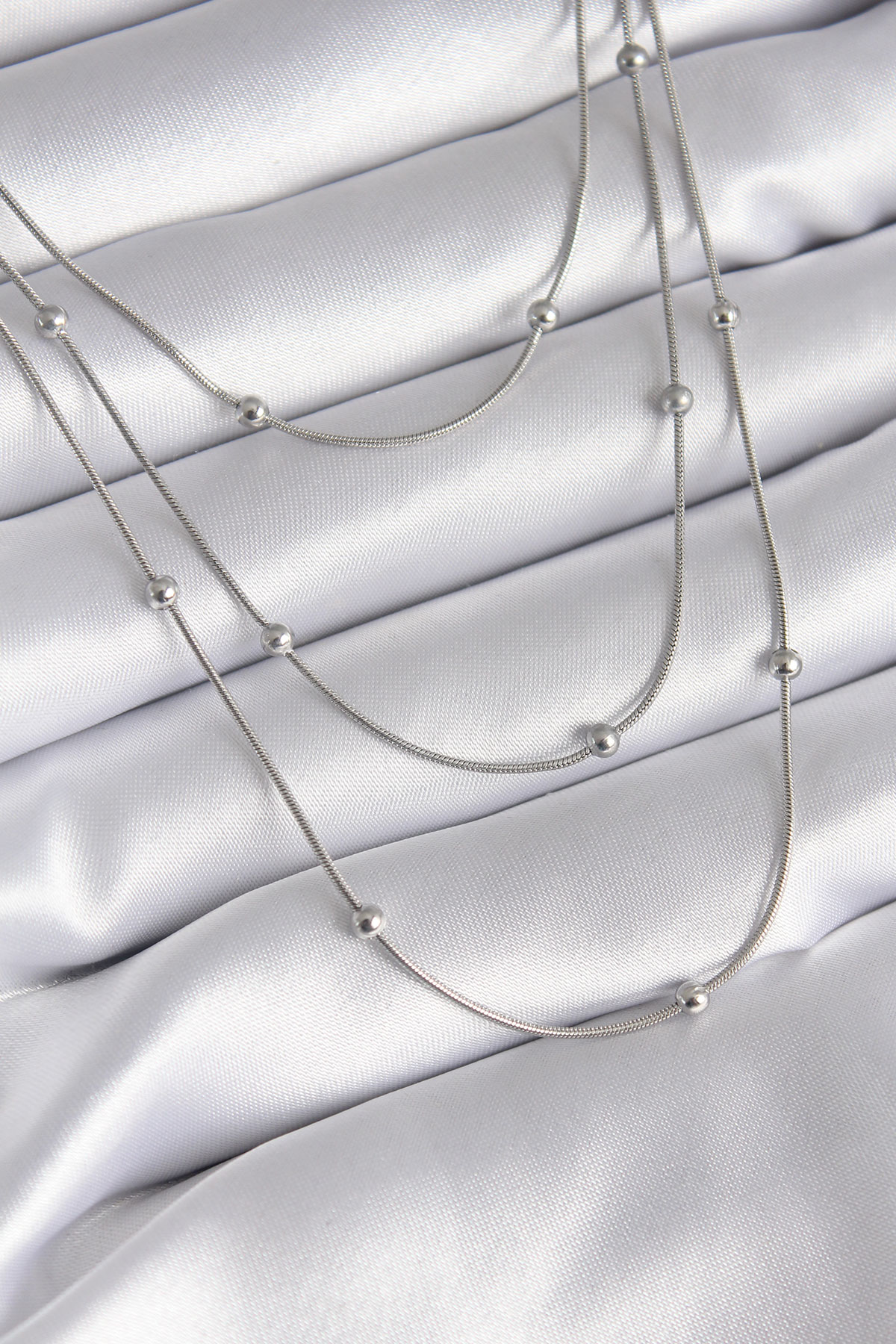 316L Çelik Gümüş Renk 3’lü Topçuk Detay Kadın Kolye