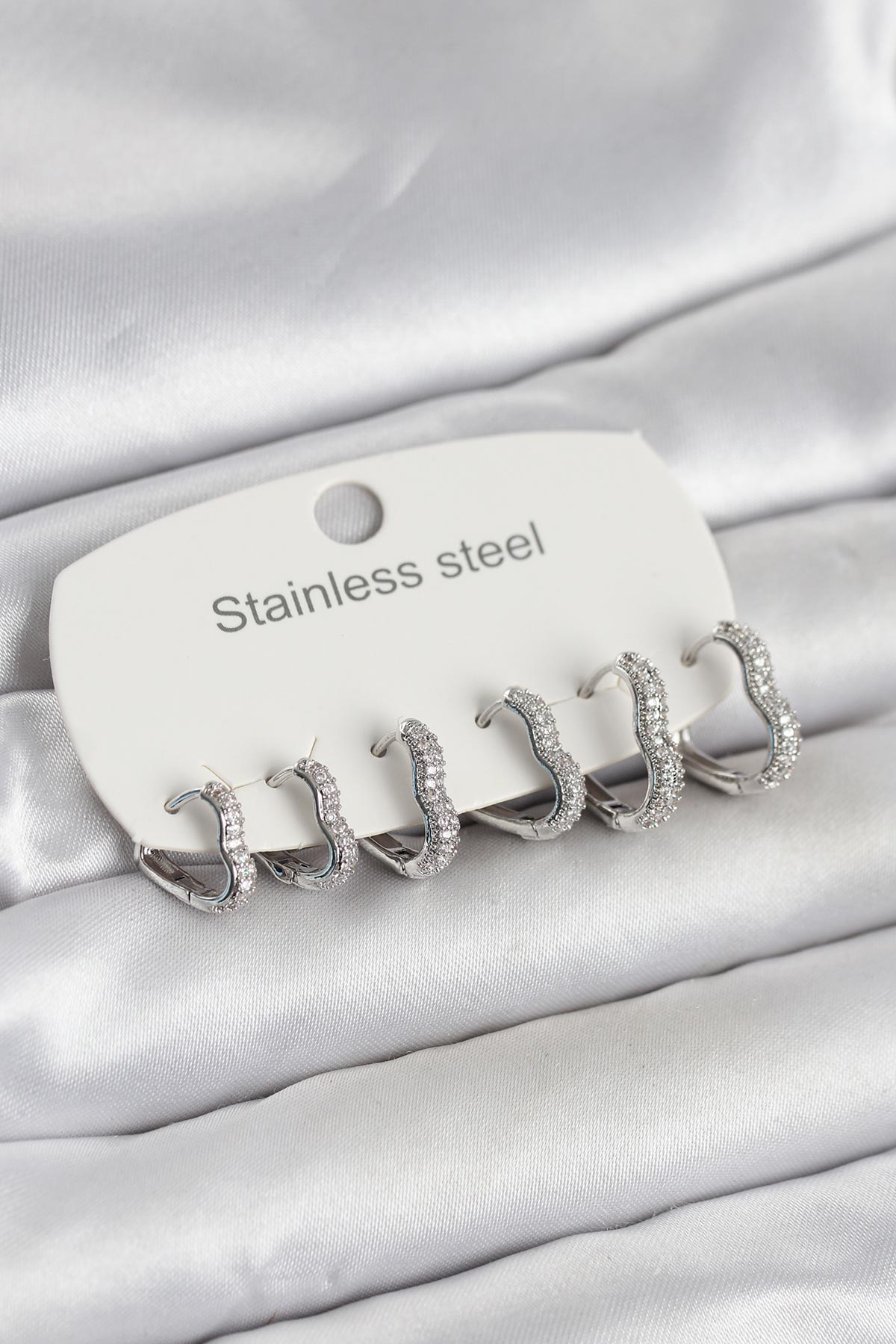 316L Çelik Gümüş Renk 6’lı Set Kalp Form Kadın Küpe