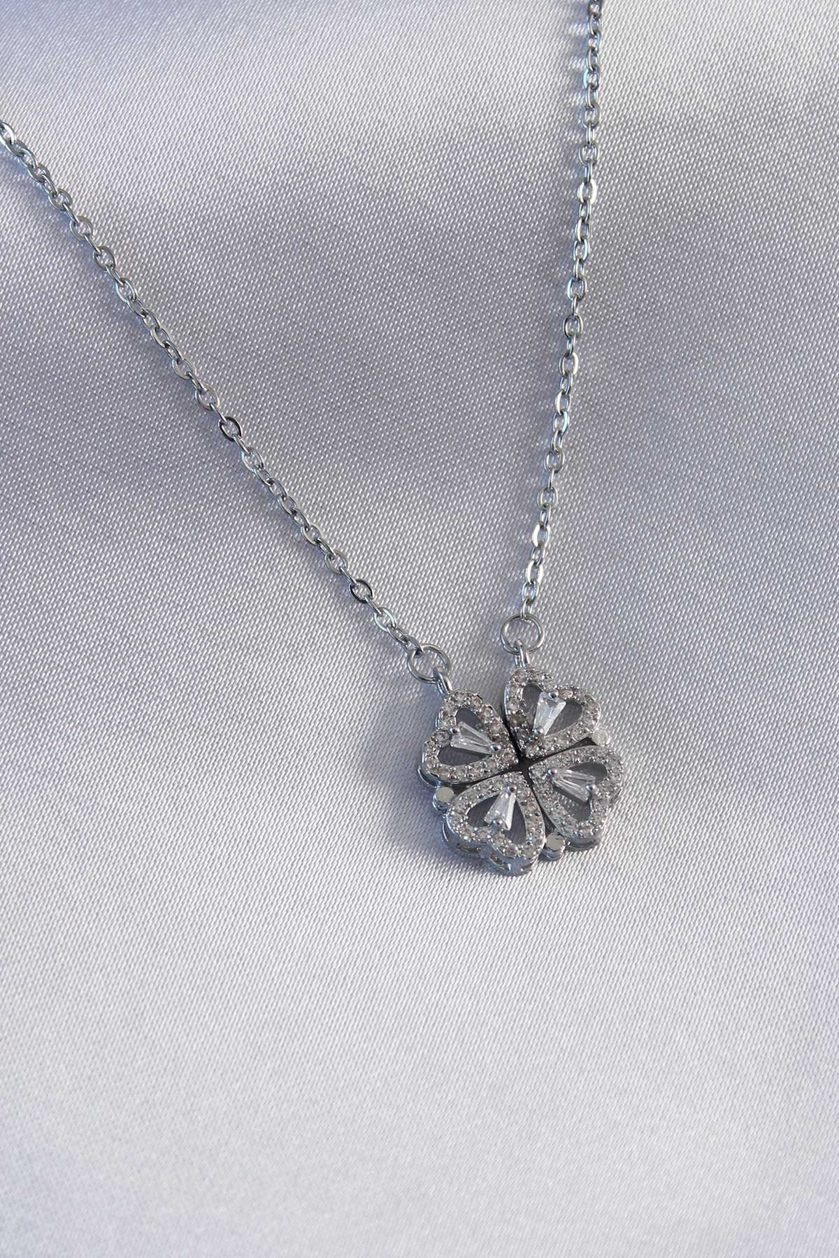 316L Çelik Gümüş Renk Açılır Yonca Model Kadın Kolye