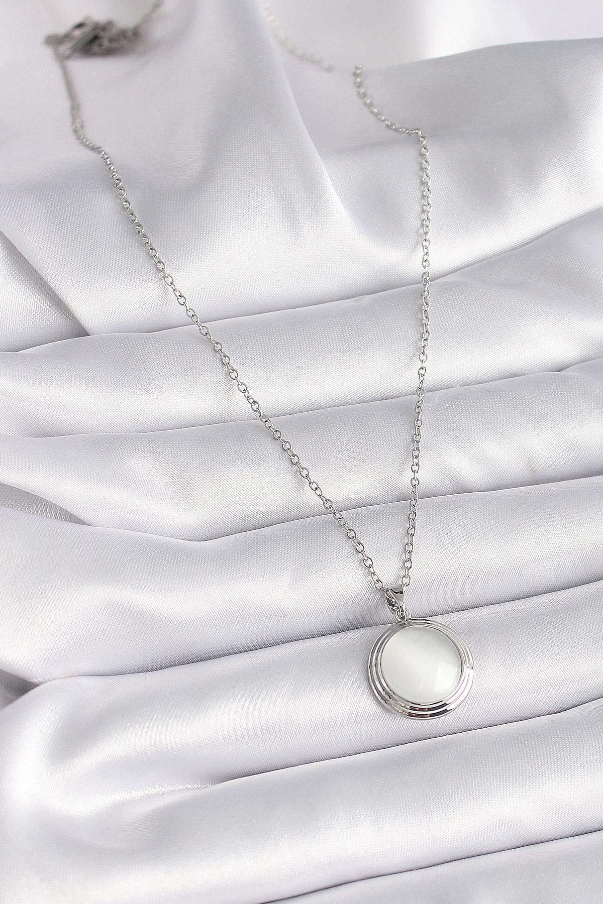 316L Çelik Gümüş Renk Beyaz Sedefli Daire Model Kadın Kolye