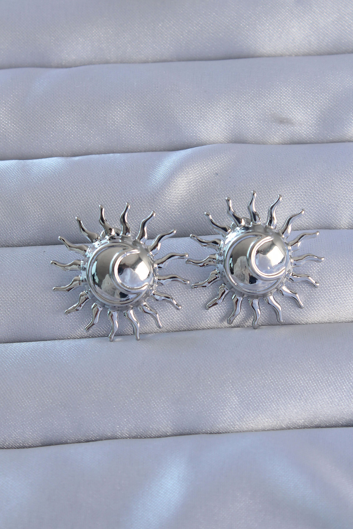 316L Çelik Gümüş Renk Güneş Model Küpe