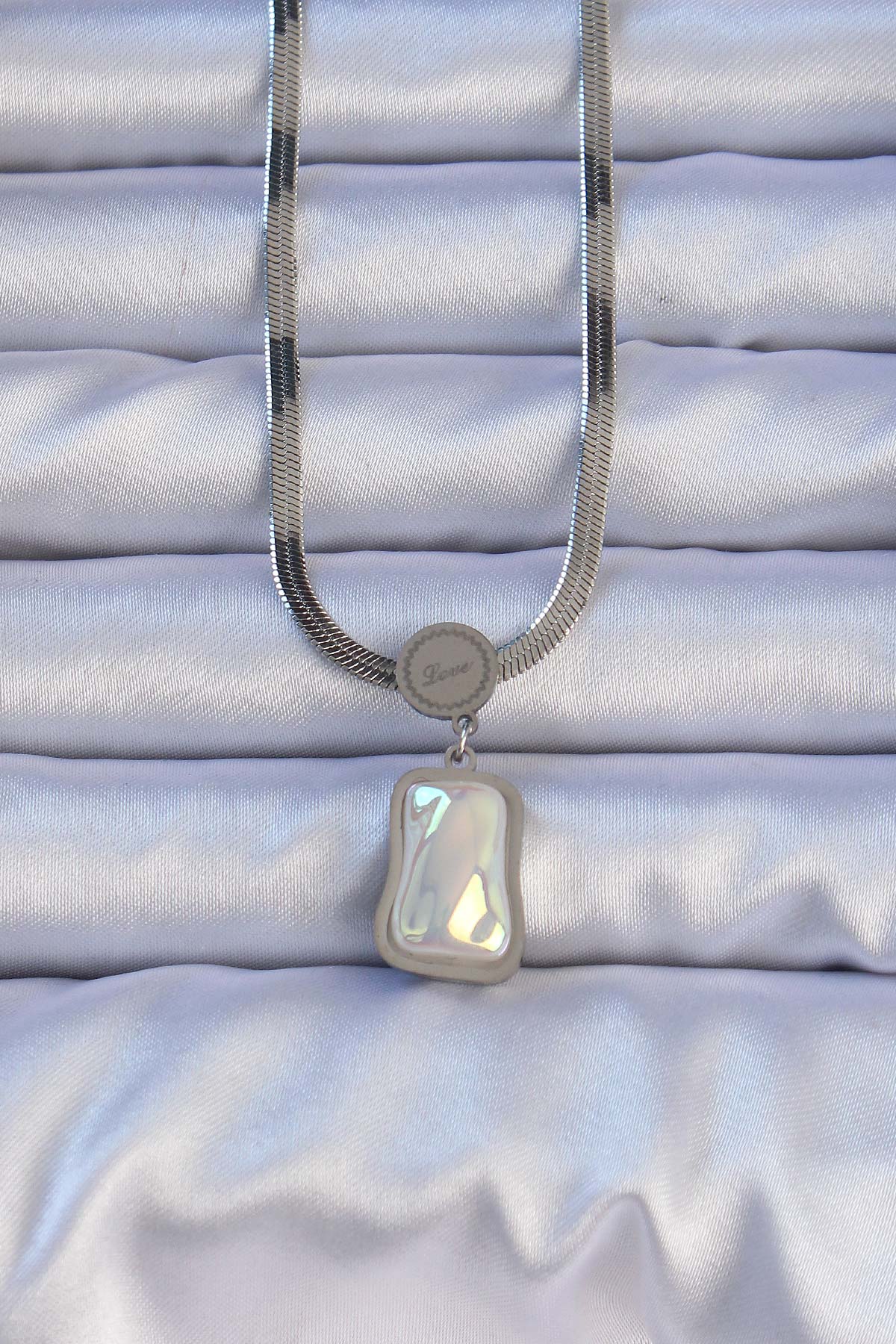 316L Çelik Gümüş Renk İtalyan Zincir Ezme Taşlı Kolye