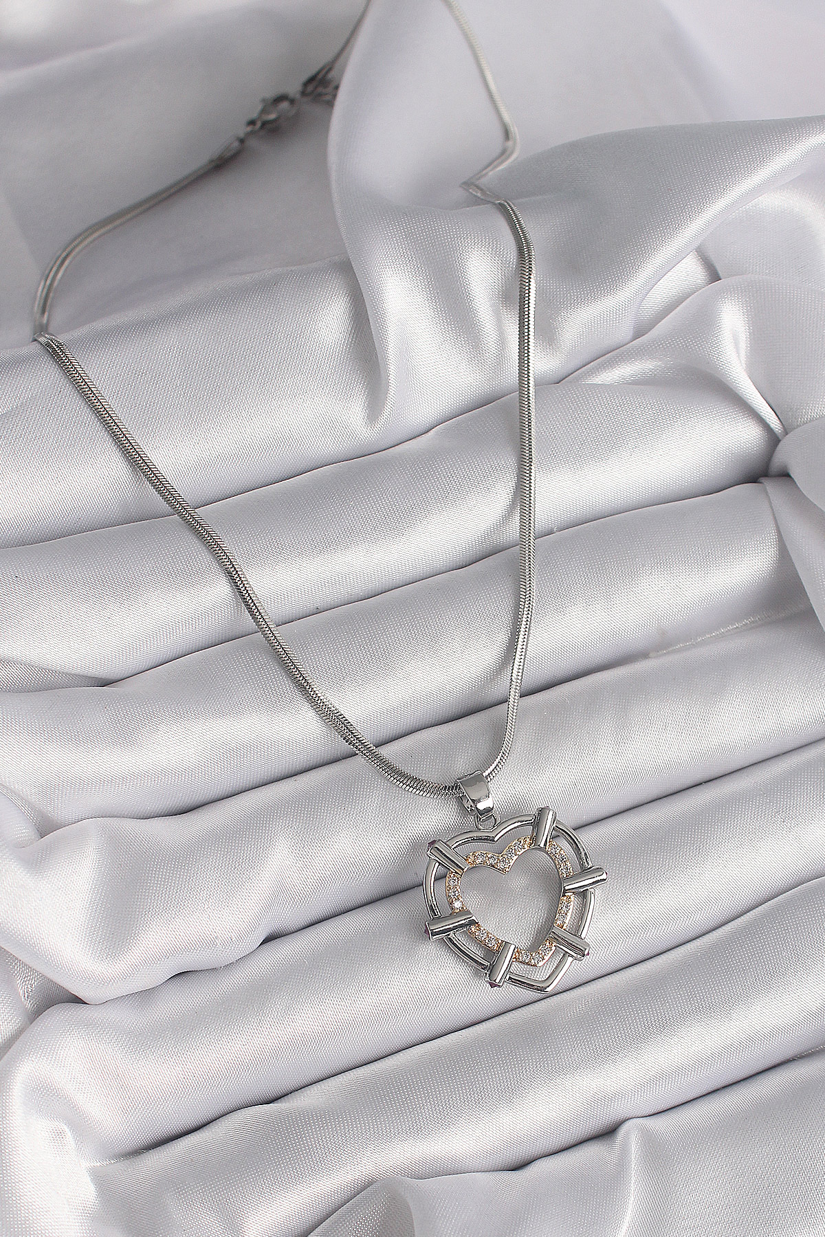 316L Çelik Gümüş Renk İtalyan Zincir Mix Renk Zirkon Taş Detay Kalp Model Kadın Kolye