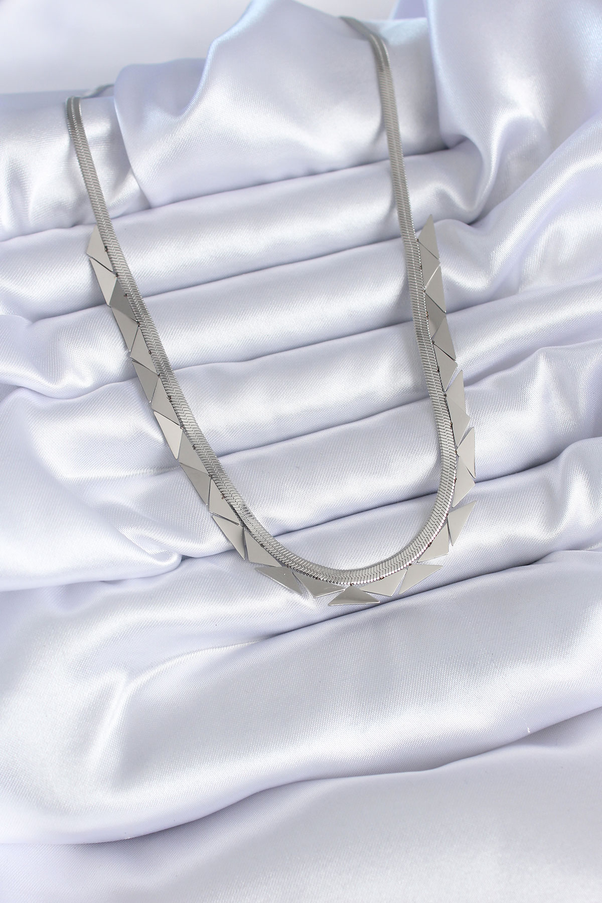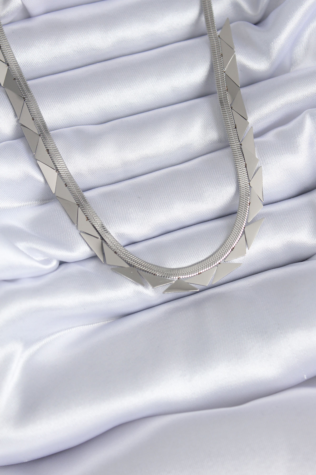 316L Çelik Gümüş Renk İtalyan Zincir Üçgen Model Kadın Kolye
