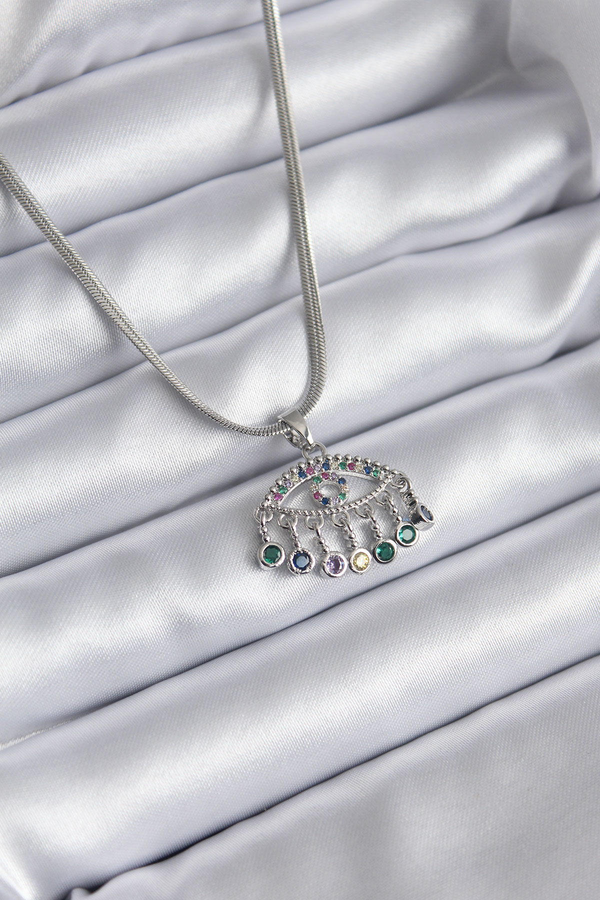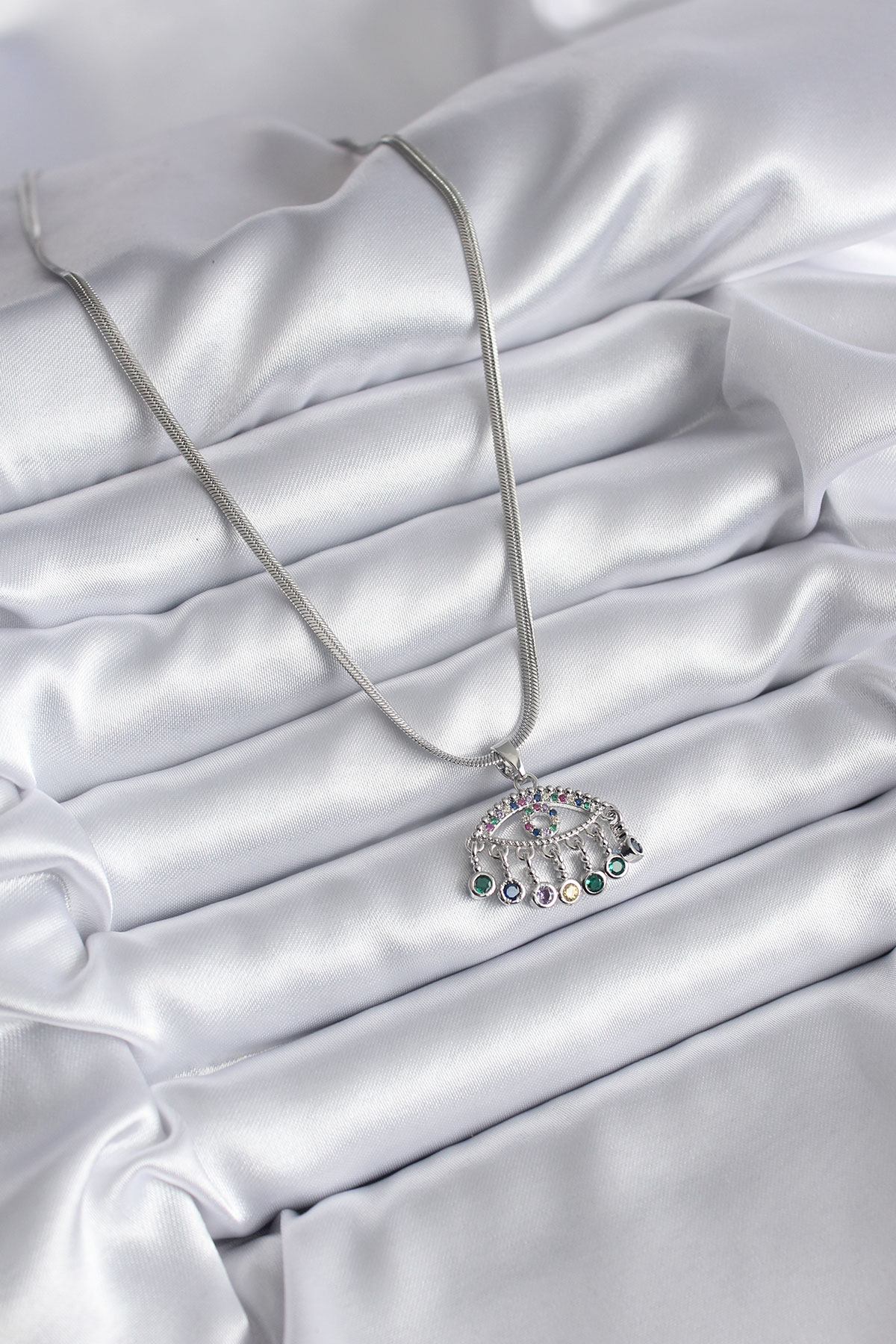 316L Çelik Gümüş Renk İtalyan Zincir Zirkon Taşlı Göz Figür Kadın Kolye