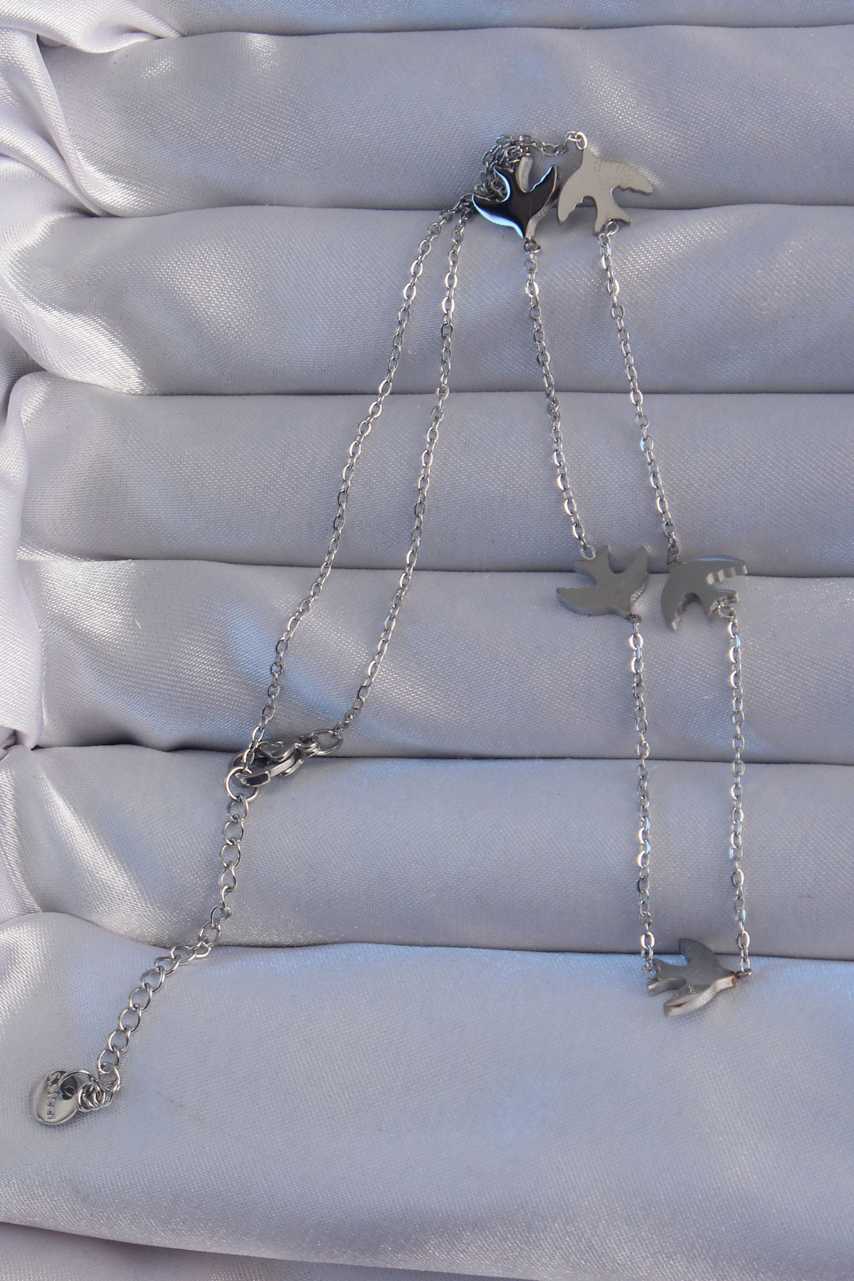 316L Çelik Gümüş Renk Kuş Model Kolye
