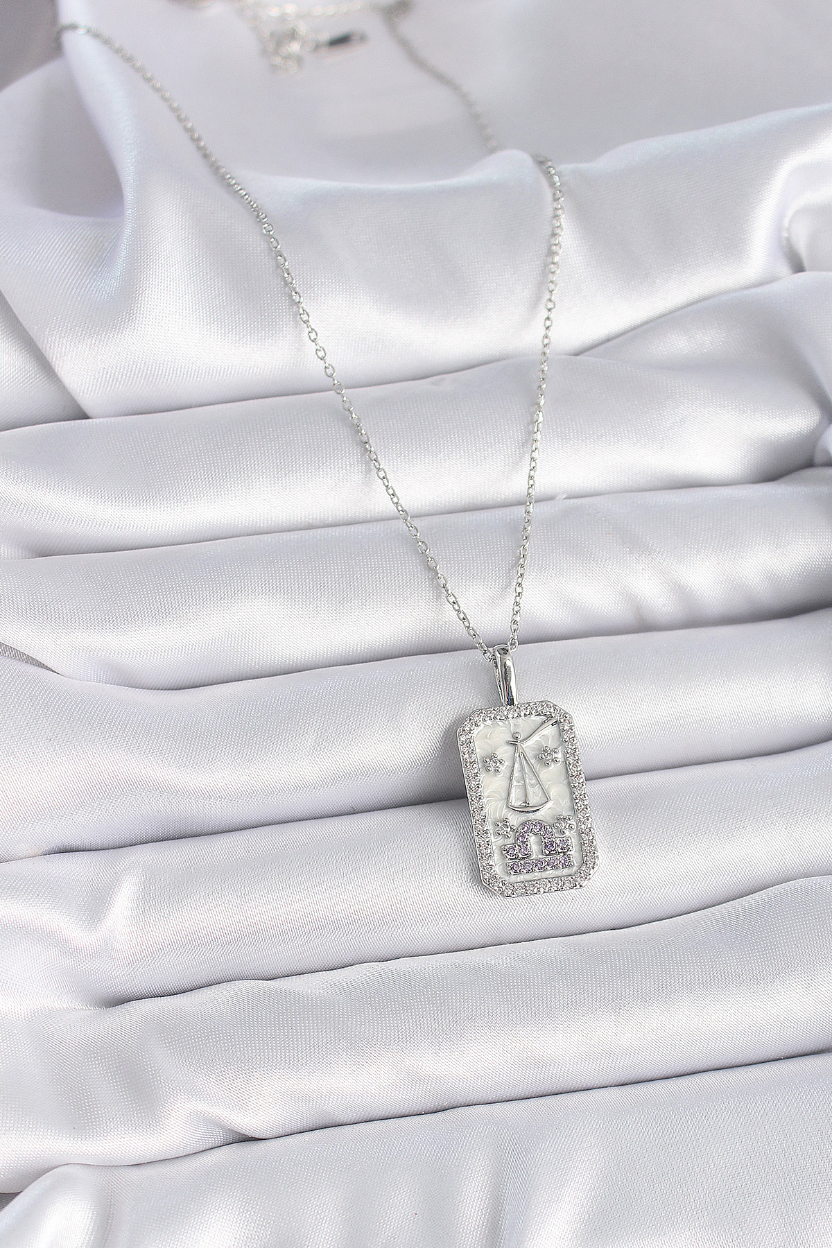 316L Çelik Gümüş Renk Terazi Burcu Zirkon Taşlı Kadın Kolye
