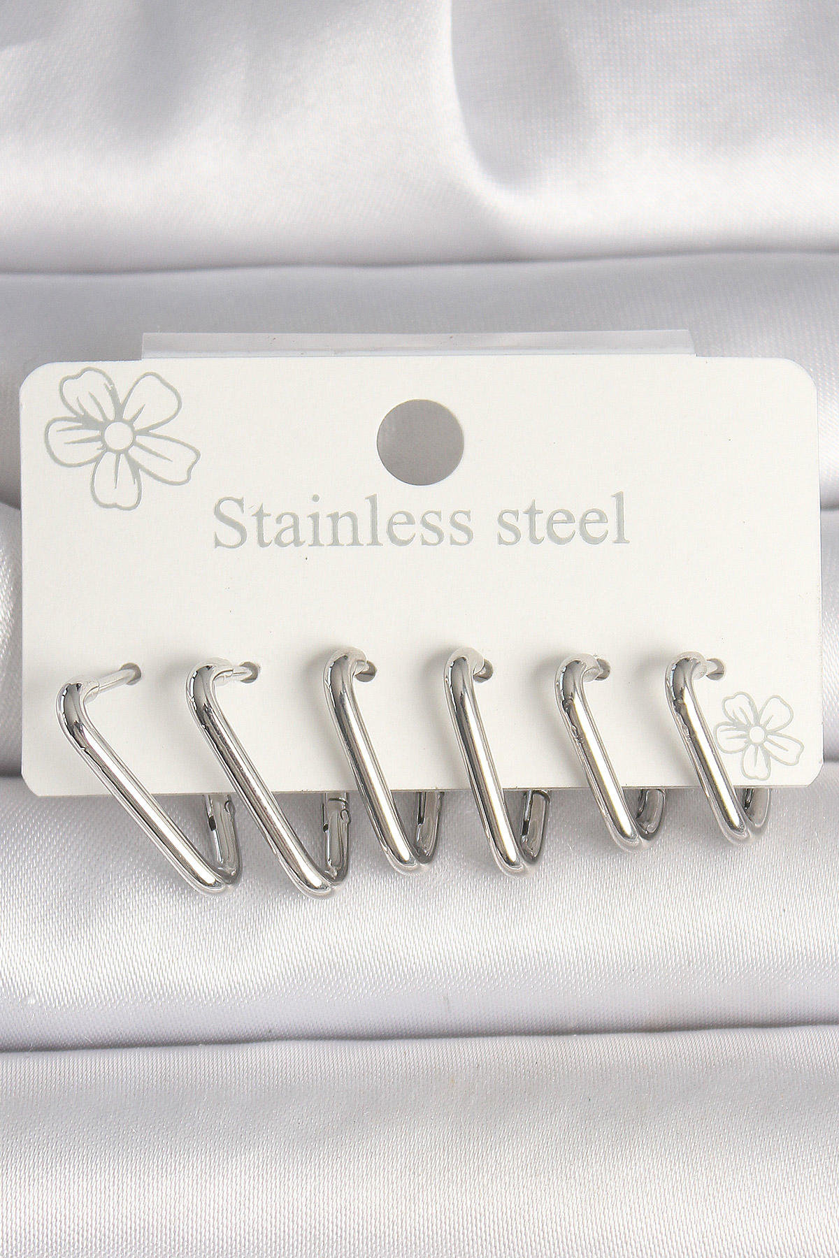 316L Çelik Gümüş Renk Üçgen Model Kadın Küpe Seti