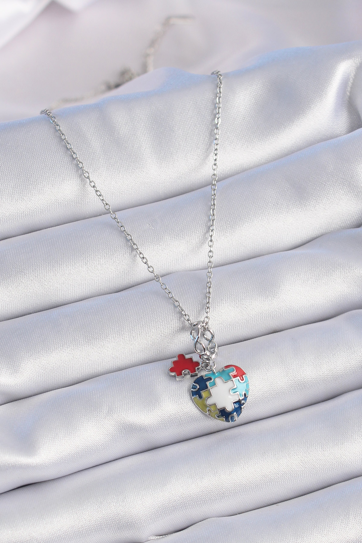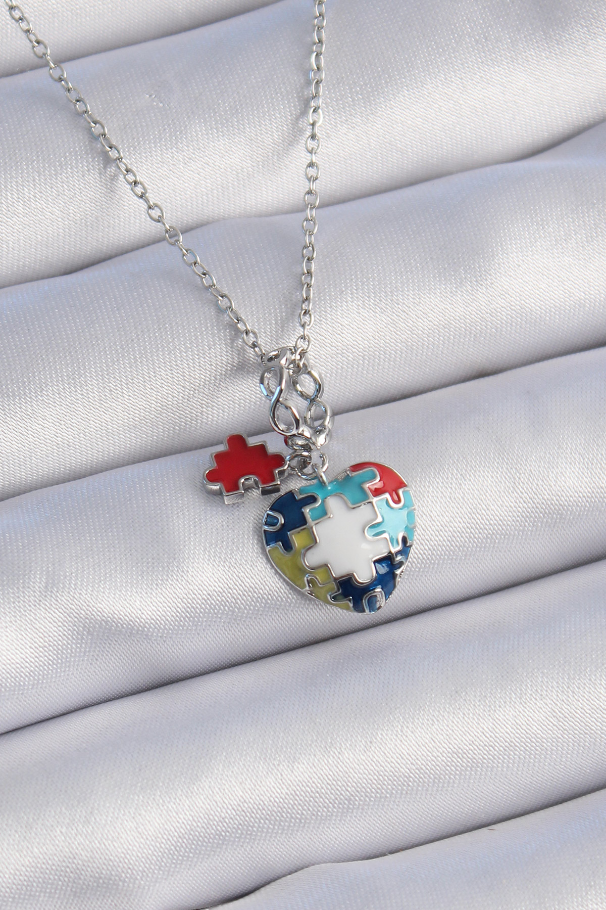 316L Çelik Gümüş Renk Yapboz Motif Kalp Figür Charm Model Kadın Kolye