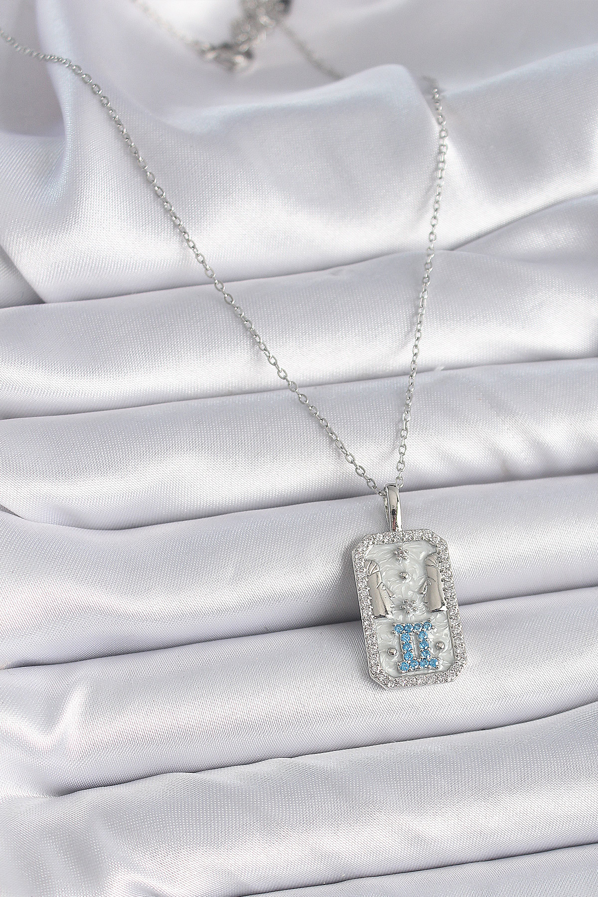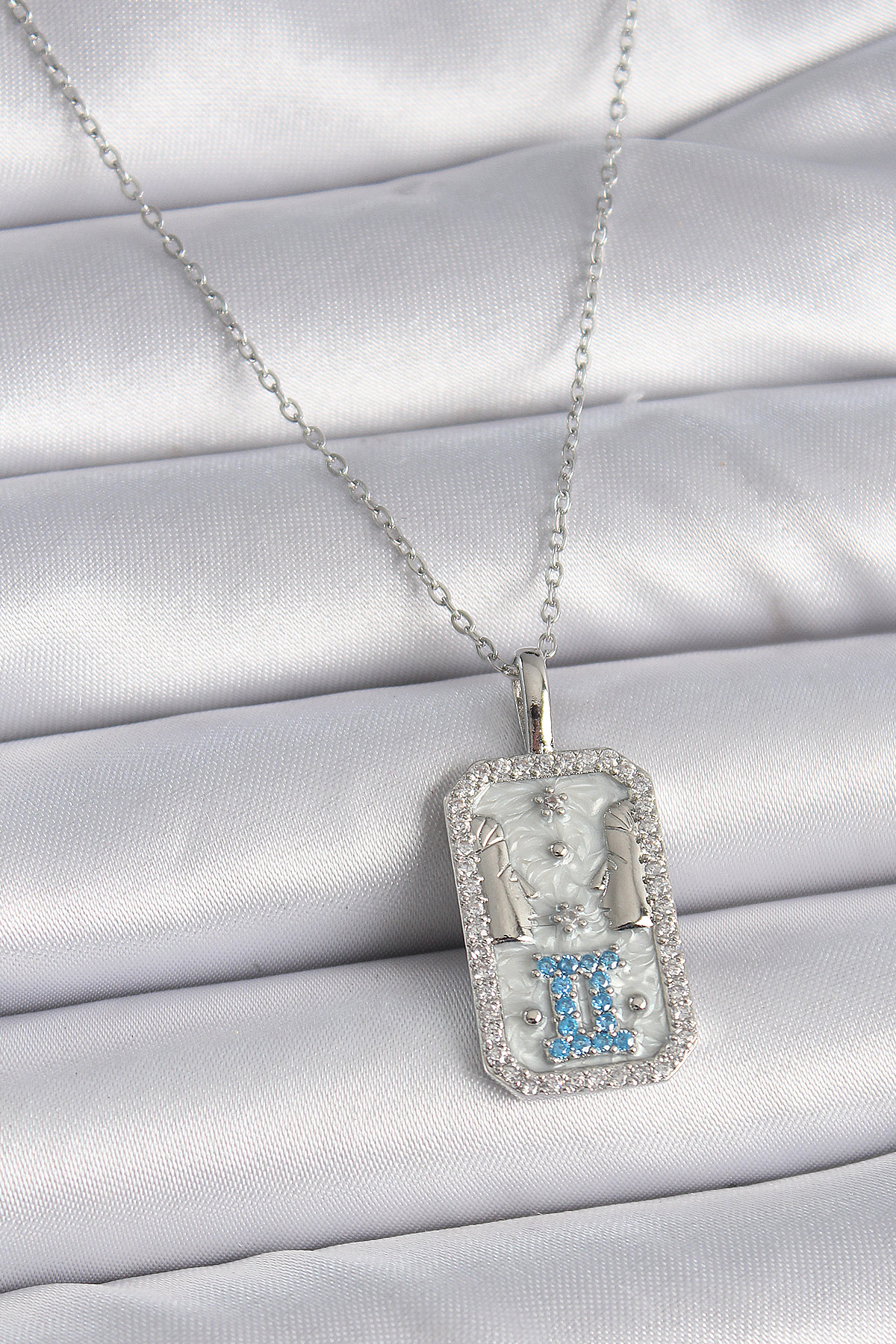 316L Çelik Gümüş Renk Zincir İkizler Burcu Zirkon Taşlı Kadın Kolye