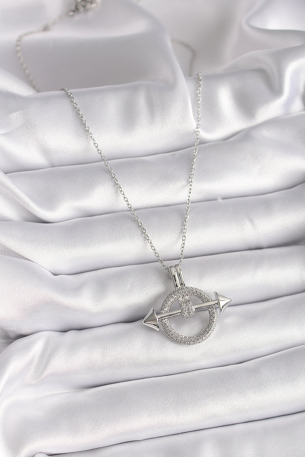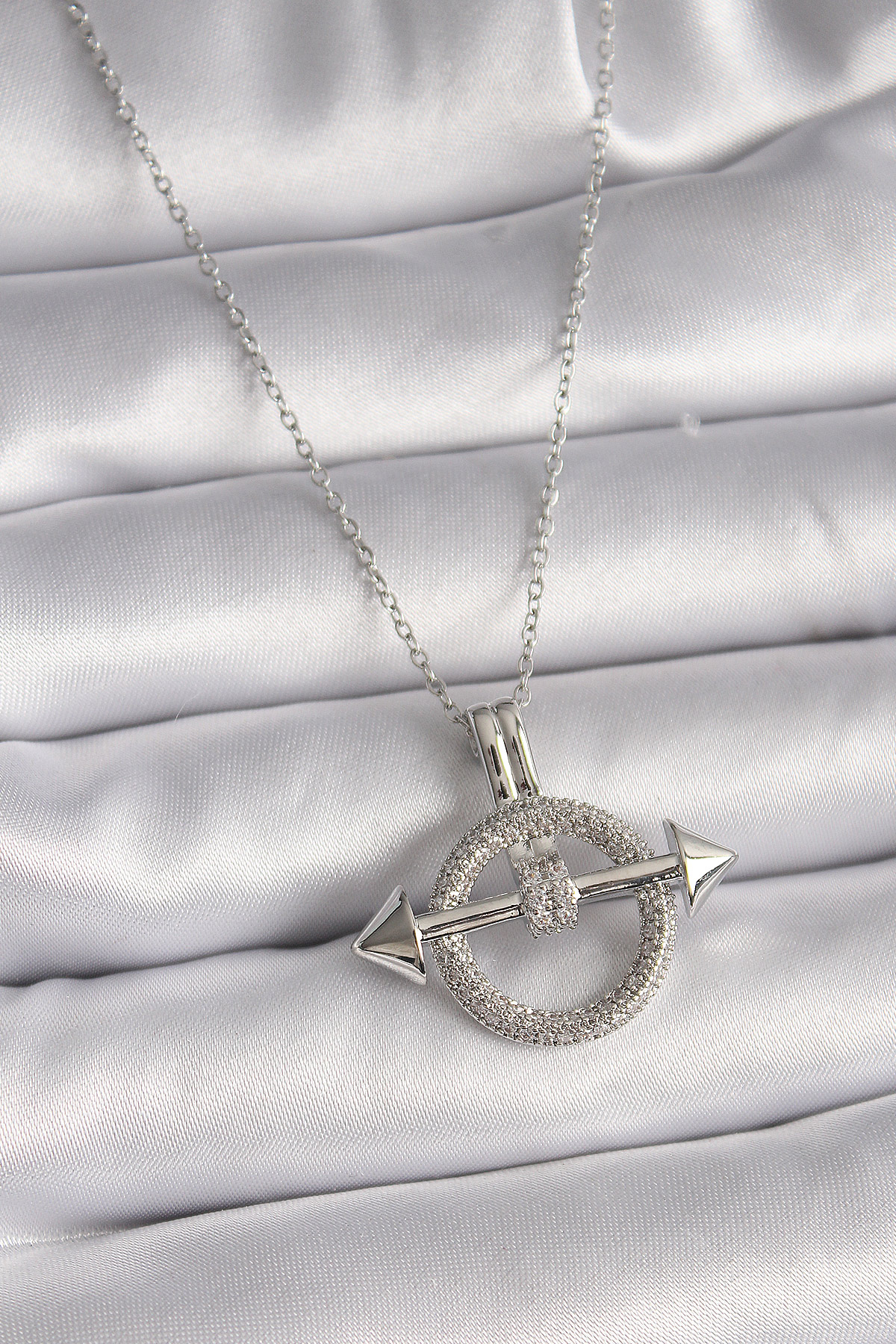 316L Çelik Gümüş Renk Zincir Zirkon Taşlı Halka Model Kadın Kolye
