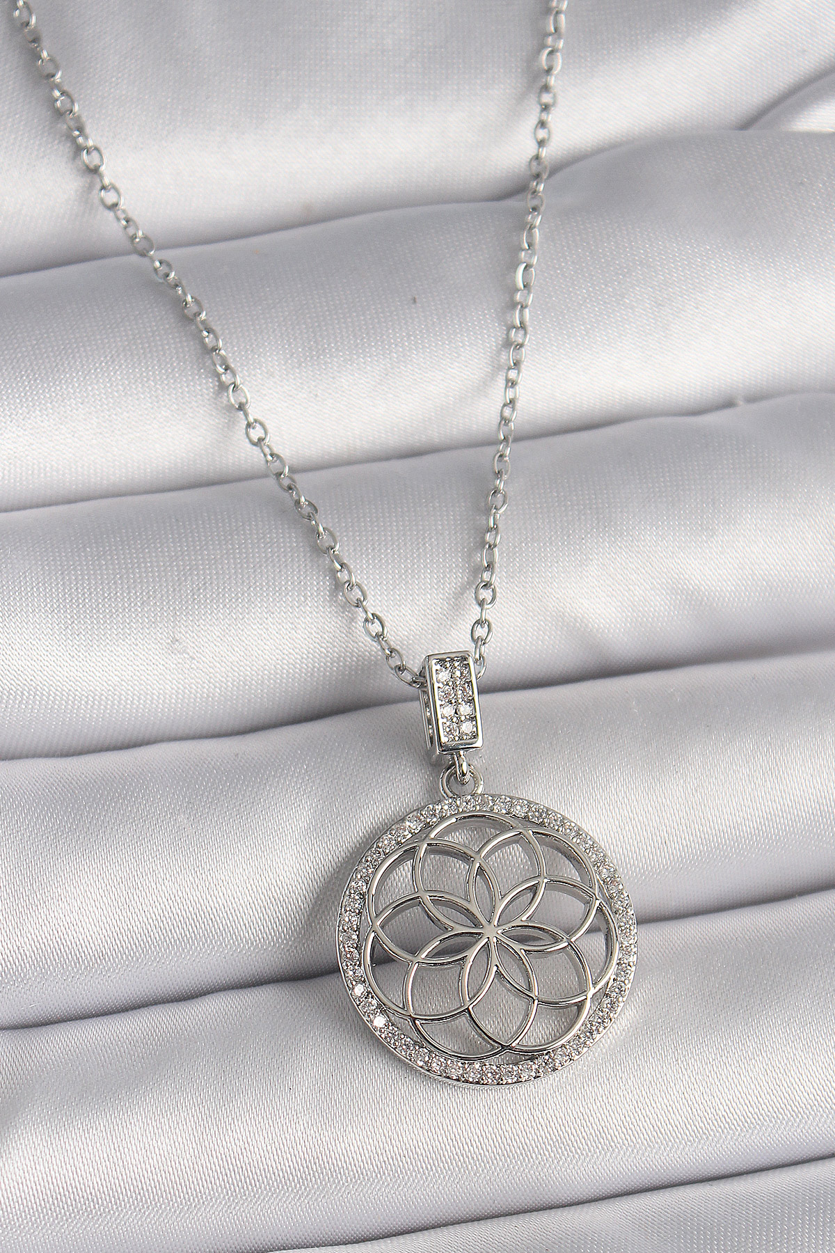 316L Çelik Gümüş Renk Zincir Zirkon Taşlı Lotus Model Kadın Kolye