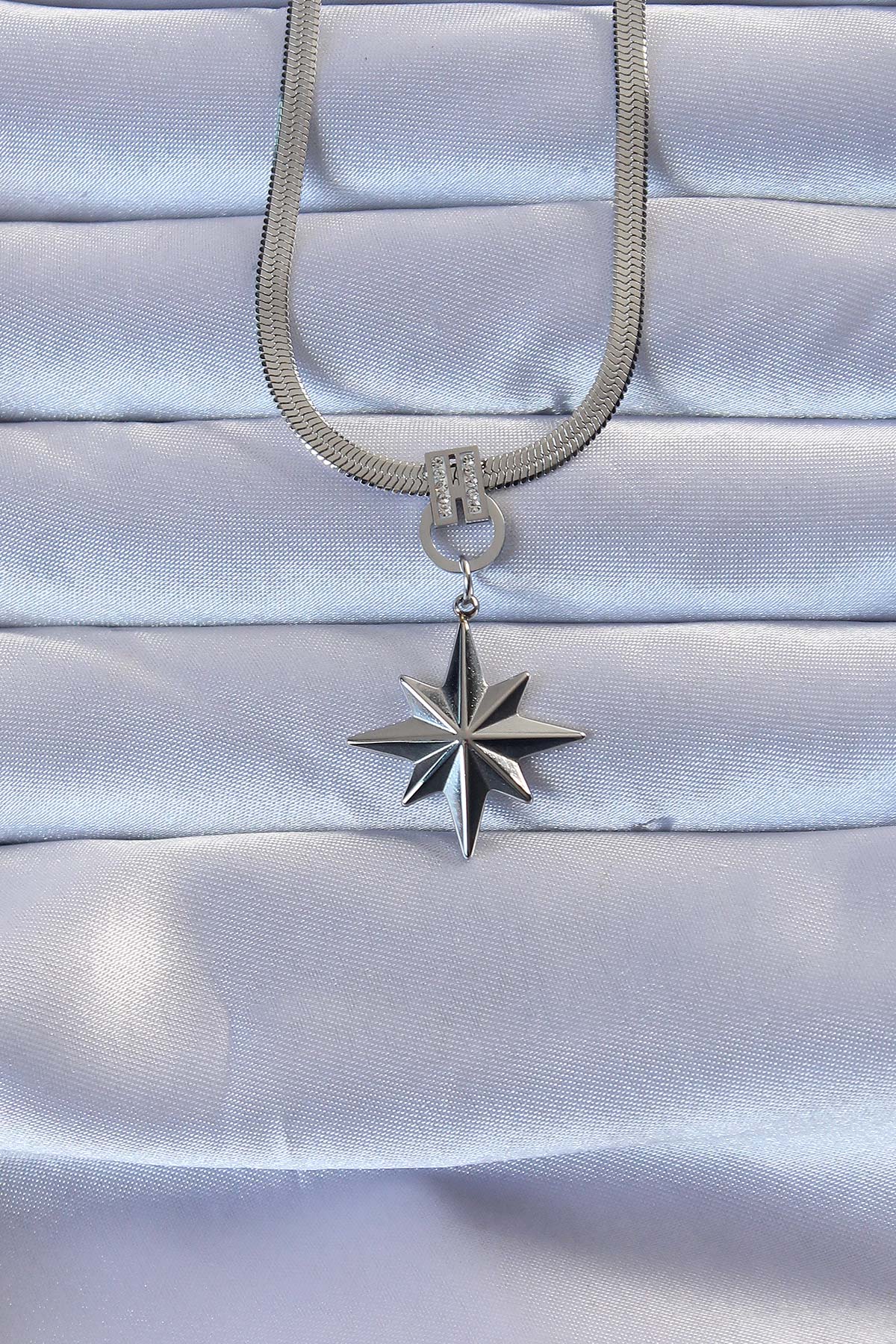 316L Çelik Gümüş Renk Zirkon Taşlı İtalyan Zincirli Kutup Yıldızı Kolye