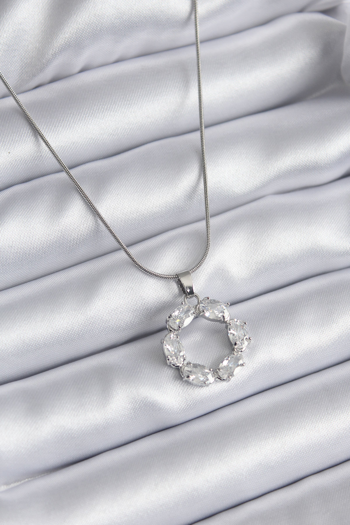 316L Çelik Gümüş Renk Zirkon Taşlı Kadın Kolye