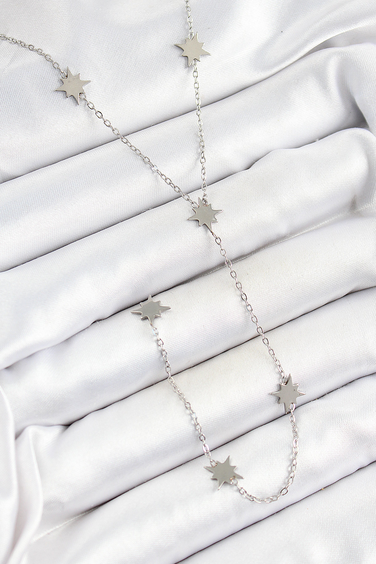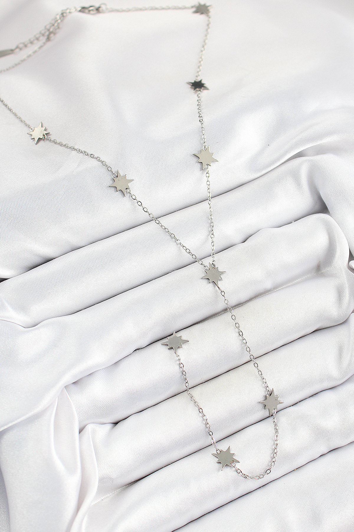 316L Çelik Kutup Yıldızı Figürlü Y Model Gümüş Renk Kadın Kolye