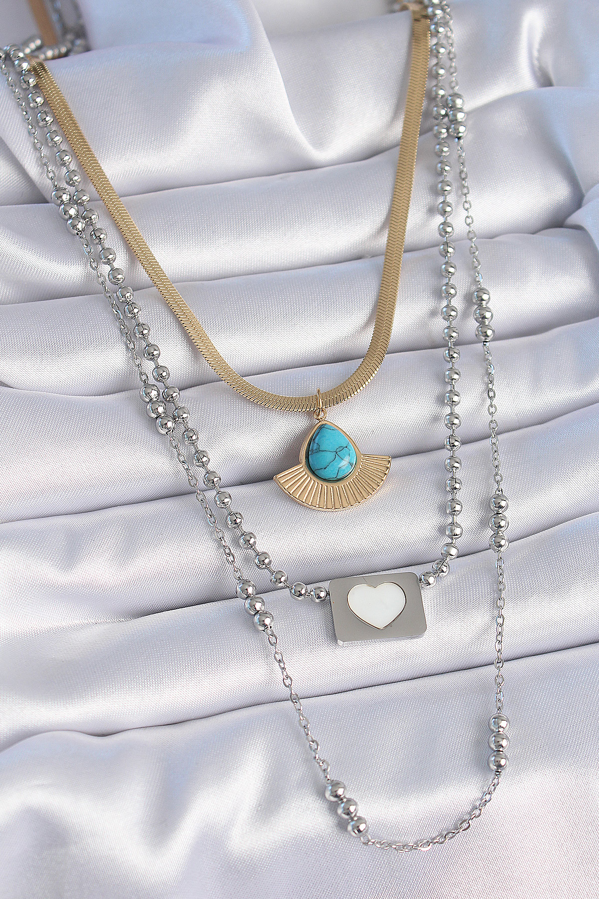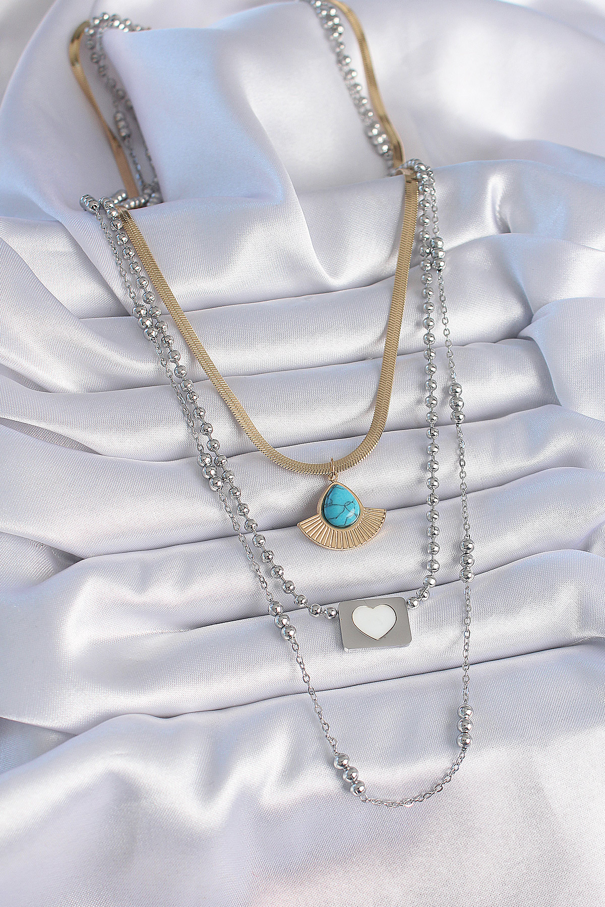 316L Çelik Mix Renk 3’lü Zincir Damla Madalyon Figür Uzun Kadın Kolye