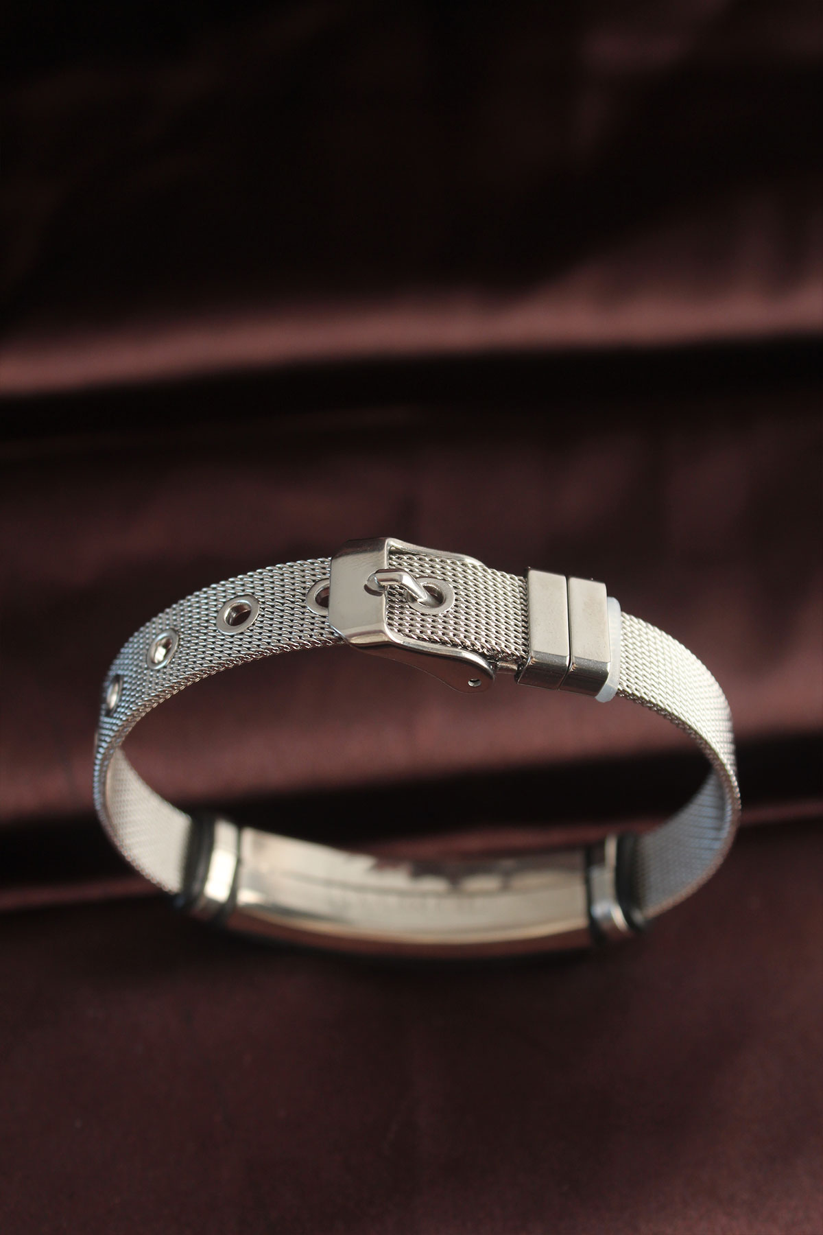 316L Çelik Siyah Desenli Ayarlanabilir Hasır Kordonlu Bileklik