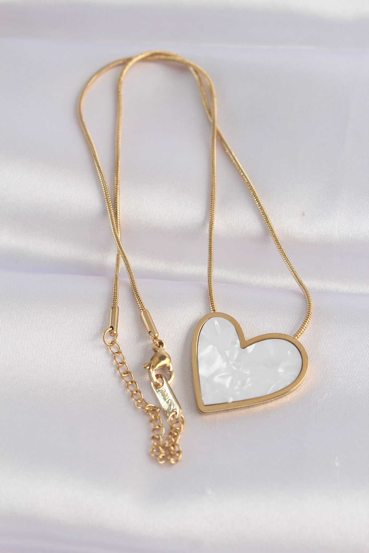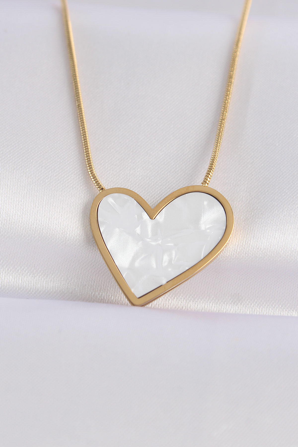 316L Çelik Zincir Altın Renk Mermer Desenli Kalp Kolye