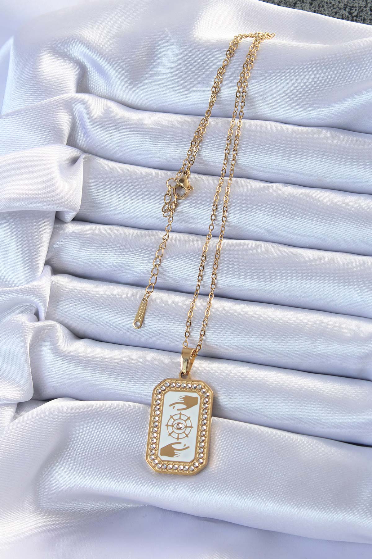 316L Çelik Zincir Altın Renk Mineli Zirkon Taşlı Göz Figür Tarot Kolye