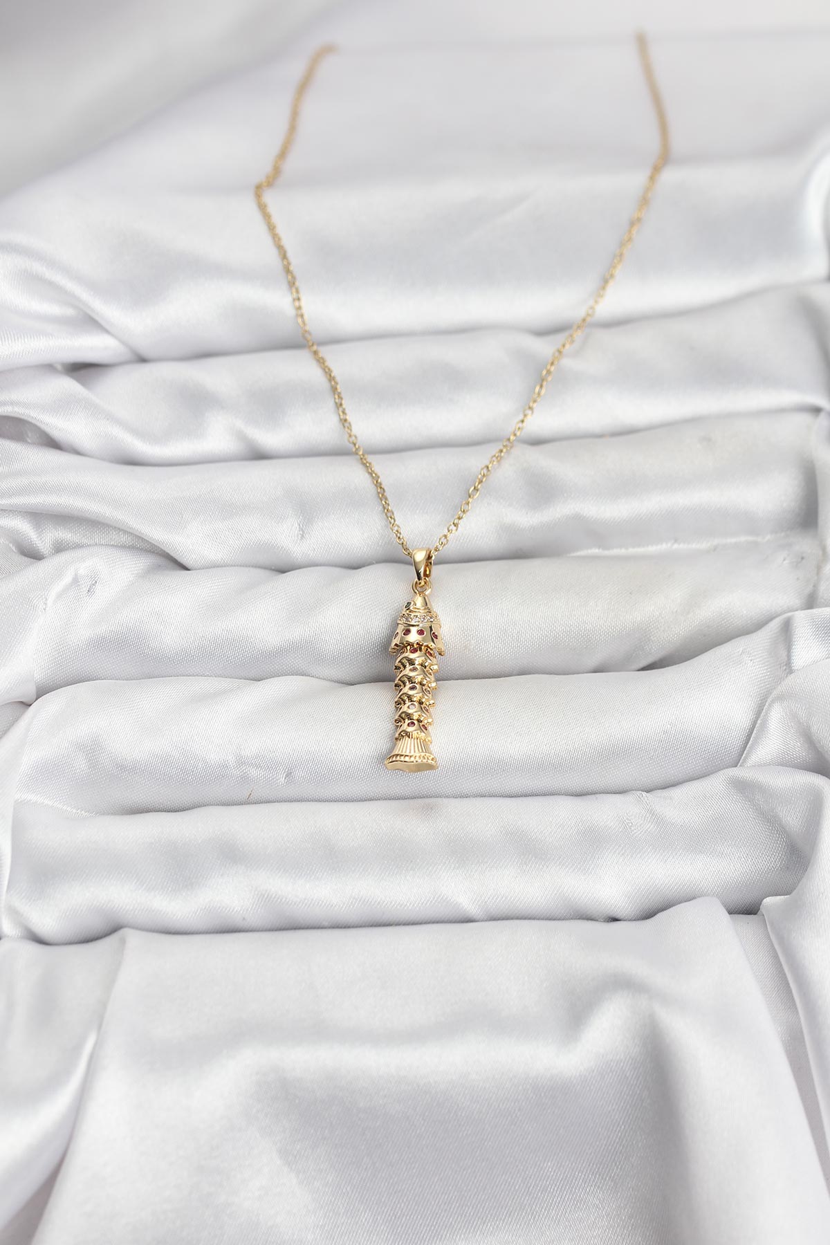 316L Çelik Zincir Gold Renk Balık Model Zirkon Taşlı Kadın Kolye