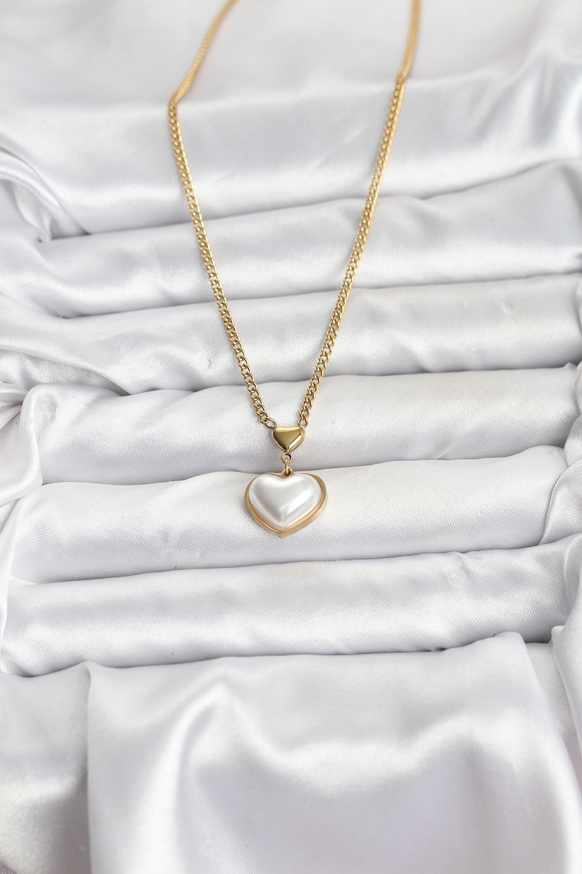 316L Çelik Zincir Gold Renk Bombeli Kalp Model Kadın Kolye