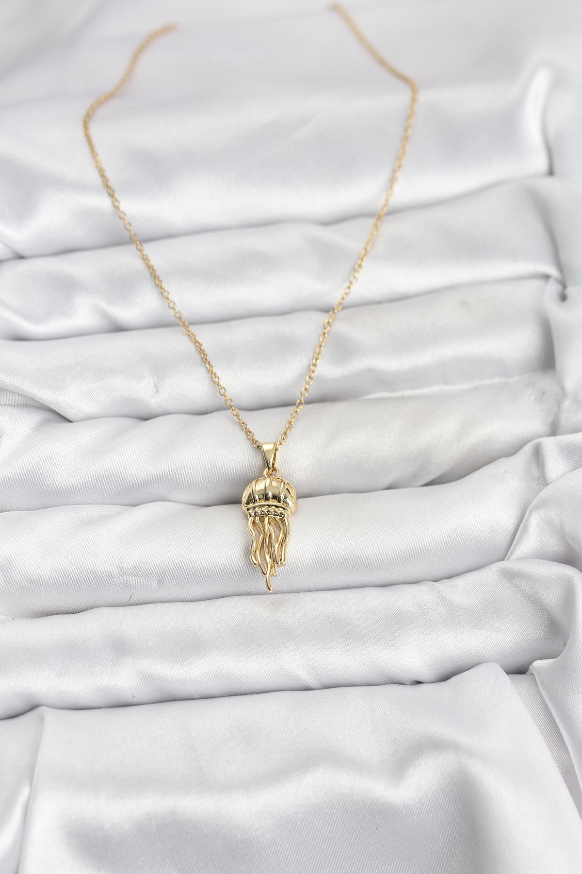 316L Çelik Zincir Gold Renk Deniz Anası Model Zirkon Taşlı Kadın Kolye