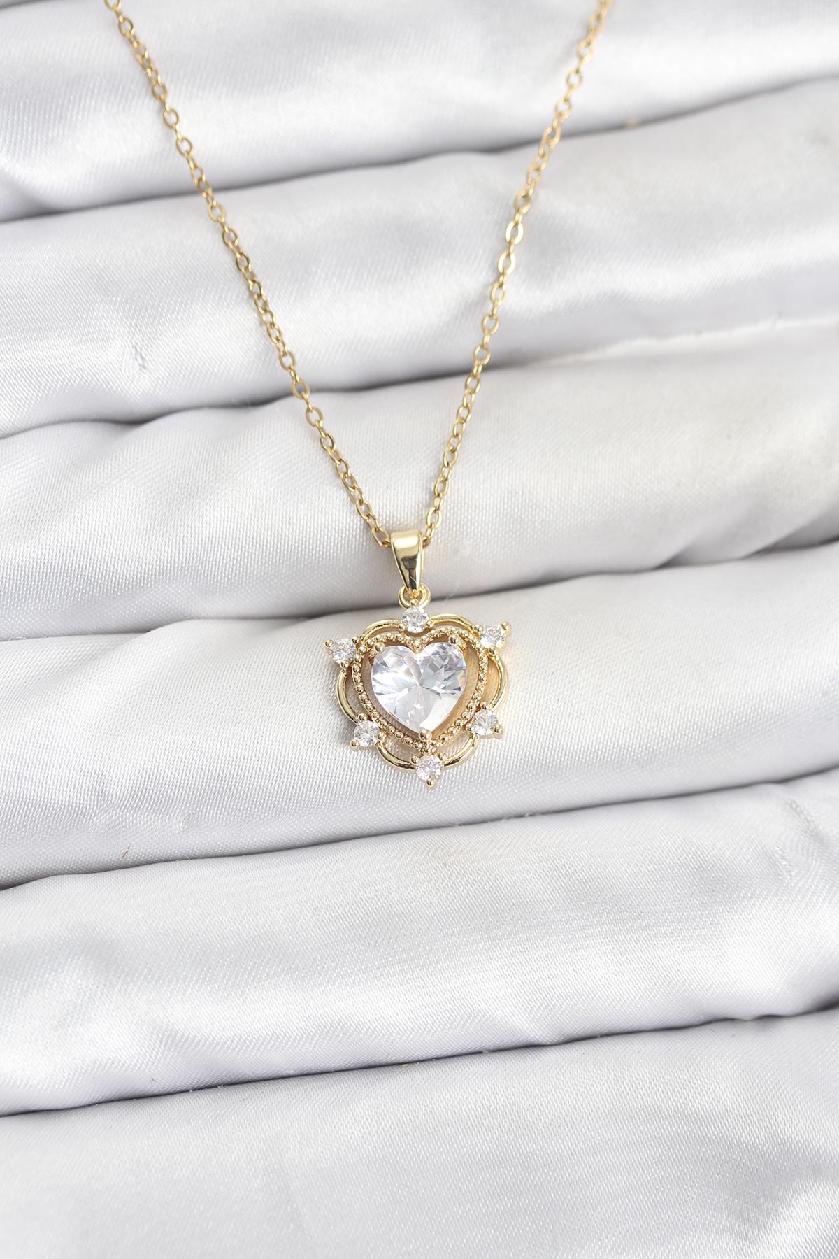316L Çelik Zincir Gold Renk Kalp Model Zirkon Taşlı Kadın Kolye