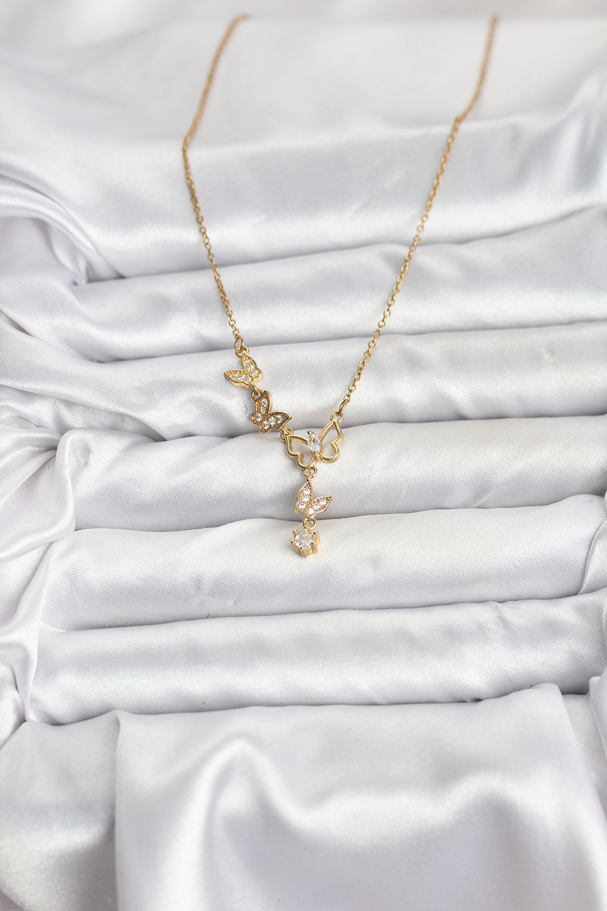 316L Çelik Zincir Gold Renk Kelebek Model Kadın Kolye